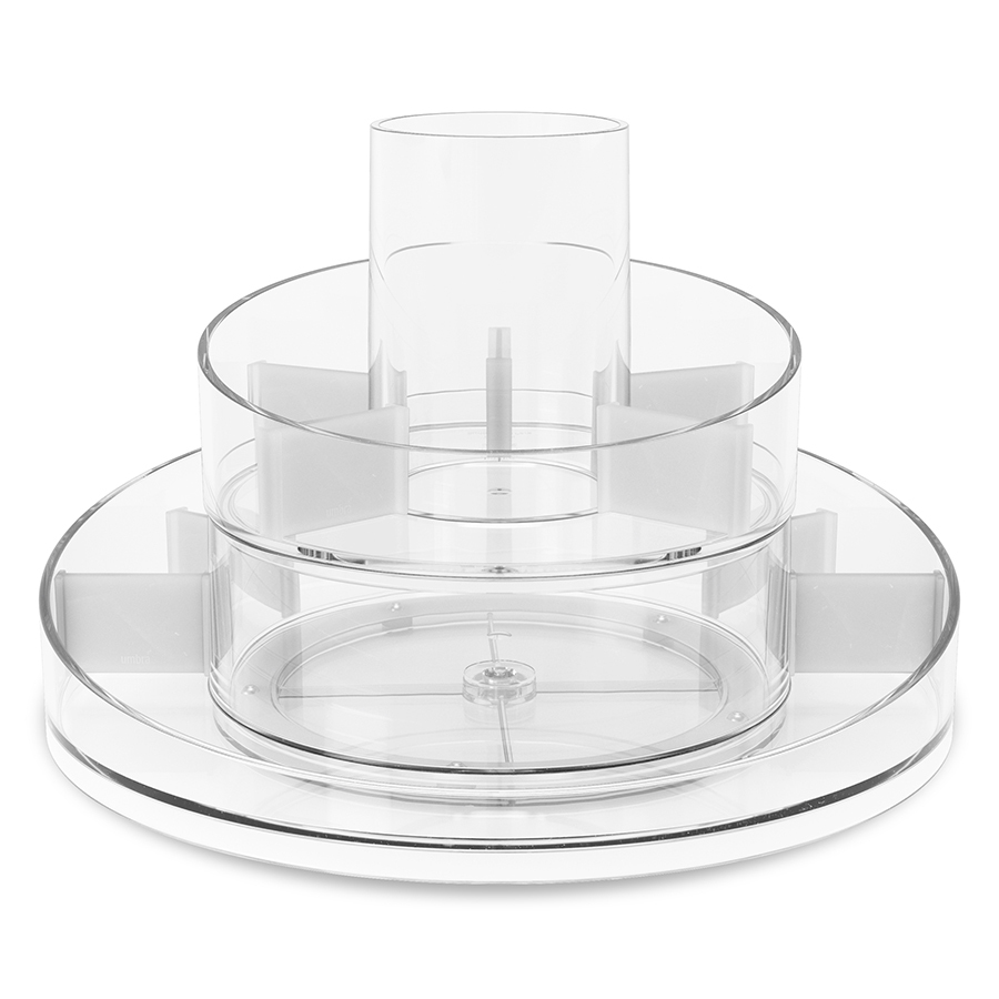 Многоуровневый органайзер поможет организовать хранение косметики и аксессуаров. Органайзер разбирается на две секции. В комплект входят 9 съемных перегородок, которые можно использовать для организации дополнительных отделений. Материал: полистирол, полипропилен, термопластичная резина, сталь. Размеры: 25х25х17 см. Пыль и загрязнения удалять при помощи мягкой влажной салфетки. Запрещается использование агрессивной бытовой химии и абразивных материалов.