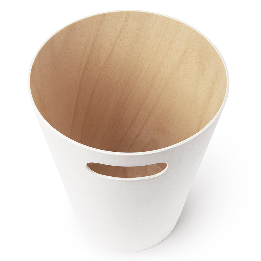 Минималистичная корзина для мусора Woodrow сделает любое пространство более стильным, функциональным и поможет в поддержании порядка в комнате или на рабочем месте. Корзина имеет удобную ручку для переноски и двухцветный дизайн. Выполненная из натуральной древесины бука и тополя, она прекрасно смотрится в интерьере дома и офиса. Экологичные материалы обеспечивают безопасную эксплуатацию. Материал: бук, тополь. Объем: 7,5 л. Размеры: диаметр верха – 22,9 см; диаметр низа – 16,3 см; высота – 27,9 см. Цвет: белый. Дизайн: Henry Huang.