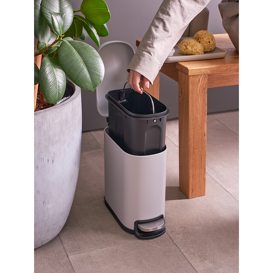 Мусорное ведро от Smart Solutions – отличное решение для дома и офиса. Особенности и преимущества: - Высококачественная углеродистая сталь с порошковым покрытием делает ведро практичным и долговечным, гарантирует защиту от коррозии. - Внутренний съемный контейнер из полипропилена обеспечивает простое обслуживание и хорошо очищается даже от стойких загрязнений. - Благодаря педали вы можете легко открывать крышку, даже когда руки заняты, что особенно удобно при готовке или уборке. - Ведро с современным дизайном в нейтральной цветовой гамме органично смотрится в любом пространстве. Материалы: углеродистая сталь с порошковым покрытием, полипропилен. Размеры: 14х27х29 см. Длина с педалью: 30 см. Объем: 5 л. Цвет: светло-серый. Внутренний контейнер из полипропилена можно мыть в теплой мыльной воде при помощи мягкой губки. Корпус из углеродистой стали можно очищать от пыли и загрязнений влажной салфеткой. Запрещается использование абразивных материалов и агрессивной бытовой химии.