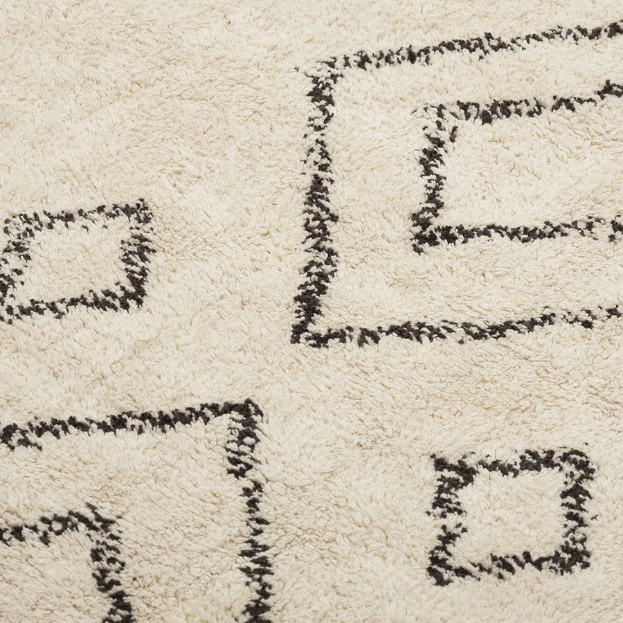 Одним из главных преимуществ берберского ковра из коллекции Ethnic является его универсальность. Благодаря спокойной цветовой гамме и ненавязчивому геометрическому узору такое напольное покрытие отлично сочетается с различными дизайнерскими решениями, добавляя в интерьер колоритные этнические нотки. Изготовленное из прочного и долговечного хлопка, изделие легко чистится и сохраняет первозданный вид на протяжении долгих лет. Материал является экологичным, имеет приятную на ощупь фактуру. Сочетание стиля, качества и практичности делает этот ковер отличным дополнением гостиной, спальни, кабинета и любой другой комнаты в доме или квартире. Размеры: 70х160 см. Плотность: 1600 г/м2. Высота ворса: 6 мм. Подложка: нет. ! Стирка запрещена ! Гладить запрещено ! Барабанная сушка запрещена ! Не отбеливать ! Сухая чистка запрещена ! Допускается ручная чистка пятен Рекомендуем незамедлительно удалять любые загрязнения. Для этого используйте бумажные салфетки или ткань с мыльным раствором воды. Регулярно чистите ковер пылесосом. Не применяйте турбощетку или щетку с жестким ворсом. Если появилась зацепка, не вытягивайте нити из ковра. Для их удаления воспользуйтесь ножницами. Стелите ковер на подложку, чтобы продлить срок его службы и защитить напольное покрытие. Небольшое количество ворса может выпадать – это нормально для ковров из натуральных материалов. Обращаем внимание, что острые предметы, открытый огонь, теплая поверхность и чрезмерная влажность могут испортить внешний вид и негативно повлиять на качественные характеристики изделия. Небольшая разница в цвете и фактуре текстиля в разных частях ковра делает каждое изделие уникальным. После вскрытия упаковки ковер в течение некоторого времени может сохранять элементы деформации вследствие долгого нахождения в скрученном виде, но уже через 1-2 недели он полностью выпрямится. Ковер может выцветать под воздействием прямых солнечных лучей. Рекомендуем периодически менять расположение изделия, чтобы цвет менялся равномерно.