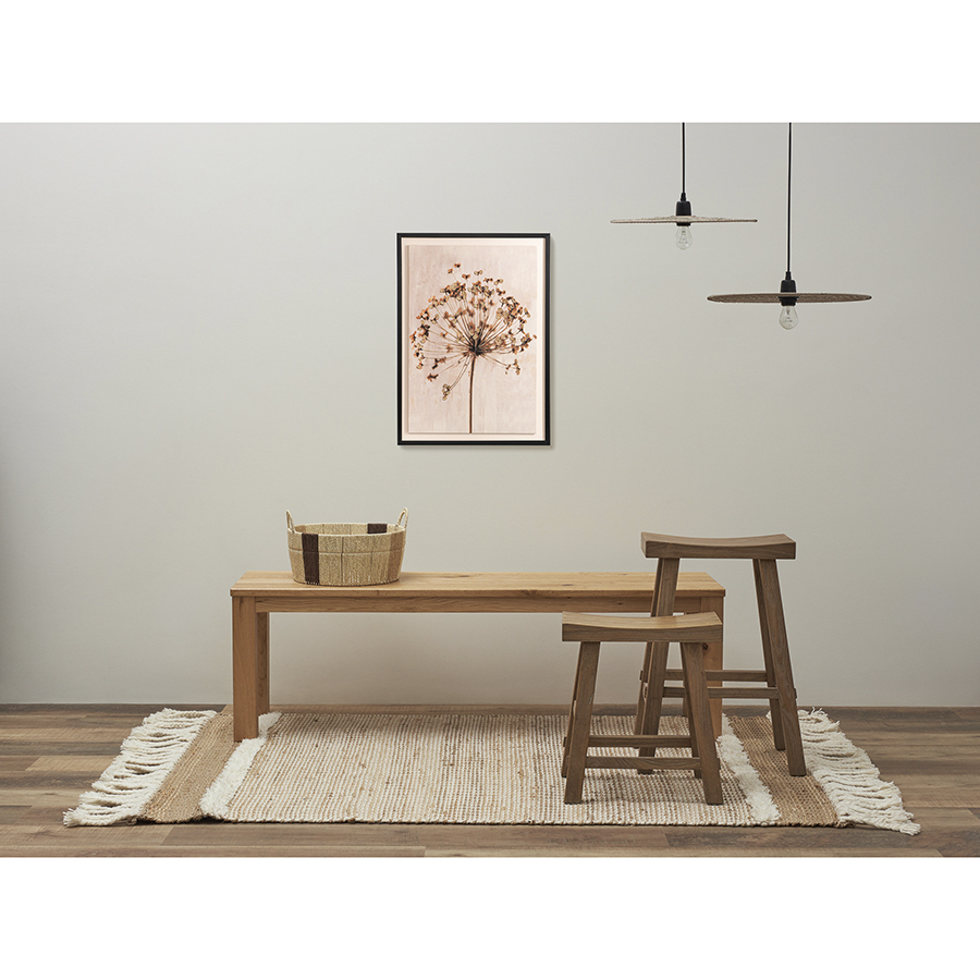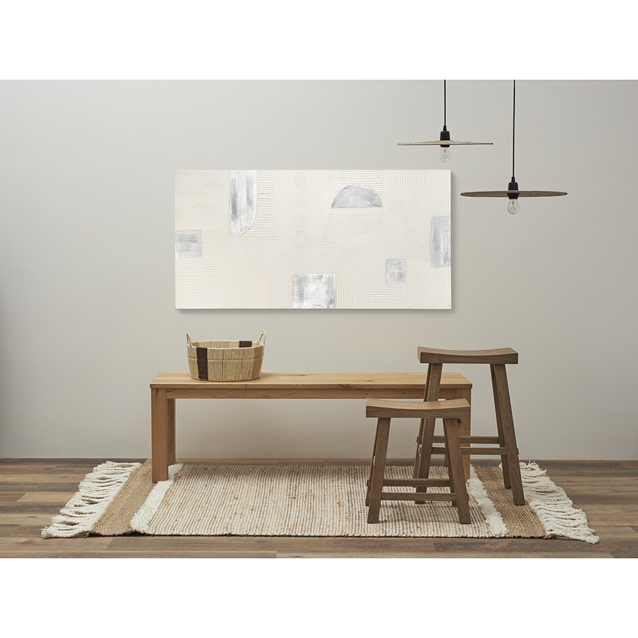 Ковер Mumbai из коллекции Ethnic поможет в создании стильного и уютного пространства с теплой домашней атмосферой. Сочетание джута и шерсти обеспечивает изделию отличные эксплуатационные характеристики. Джут известен своей прочностью и долговечностью. Шерсть обладает хорошими звукоизоляционными свойствами, что позволяет снизить уровень шума в помещении. Натуральные материалы гарантируют безопасное использование, простой уход, не вызывают аллергию. Узоры на ковре красиво сменяют друг друга, захватывая воображение и создавая ощущение движения и ритма. Декор в виде бахромы придает дизайну особый шарм. Размеры: 200х300 см. Плотность: 1800 г/м2. Высота ворса: 30 мм. Подложка: нет. ! Стирка запрещена ! Гладить запрещено ! Барабанная сушка запрещена ! Не отбеливать ! Сухая чистка запрещена ! Допускается ручная чистка пятен Рекомендуем незамедлительно удалять любые загрязнения. Для этого используйте бумажные салфетки или ткань с мыльным раствором воды. Регулярно чистите ковер пылесосом. Не применяйте турбощетку или щетку с жестким ворсом. Если появилась зацепка, не вытягивайте нити из ковра. Для их удаления воспользуйтесь ножницами. Стелите ковер на подложку, чтобы продлить срок его службы и защитить напольное покрытие. Небольшое количество ворса может выпадать – это нормально для ковров из натуральных материалов. Обращаем внимание, что острые предметы, открытый огонь, теплая поверхность и чрезмерная влажность могут испортить внешний вид и негативно повлиять на качественные характеристики изделия. Небольшая разница в цвете и фактуре джута в разных частях ковра делает каждое изделие уникальным. У новых напольных покрытий может присутствовать естественный запах, он абсолютно безопасен и при частом проветривании быстро исчезает. После вскрытия упаковки ковер в течение некоторого времени может сохранять элементы деформации вследствие долгого нахождения в скрученном виде, но уже через 1-2 недели он полностью выпрямится. Ковер может выцветать под воздействием прямых солнечных лучей. Рекомендуем периодически менять расположение изделия, чтобы цвет менялся равномерно.
