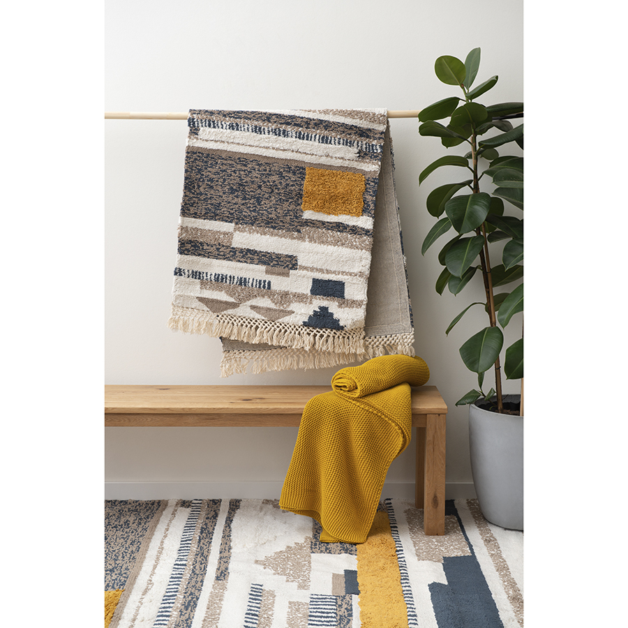 Ковер из хлопка Kochi из коллекции Ethnic впишется в любой интерьер и станет необычным акцентом. Оригинальное и практичное изделие с тканым геометрическим орнаментом в абстрактном стиле украшено плетеной бахромой по коротким сторонам. Ковер представлен в двух размерах. Размер: 160х230 см. Плотность: 2550 г/м2. Высота ворса: 8 мм. ! Стирка запрещена ! Гладить запрещено ! Барабанная сушка запрещена ! Не отбеливать ! Сухая чистка запрещена ! Допускается ручная чистка пятен Обращаем ваше внимание, что представленный ковер изготавливается мастерами вручную с большой заботой и теплотой. Все изделия уникальны. Соответственно, неполное совпадение рисунка, заявленного на фото, а также возможное расхождение в размерах в пределах 10-15 см допустимы и не являются браком. Засохшие пятна можно удалять соскабливанием мягкими щетками в направлении к центру пятна, а влажные — бумажными салфетками или тканью с мягким моющим средством. Для чистки ковра пылесосом используйте стандартную щетку. Применение турбощетки категорически запрещается. Перед эксплуатацией изделия обязательно ознакомьтесь с правилами ухода на этикетке. Этот экологичный ковер изготовлен из переработанного материала, поэтому каждое изделие уникально в своем цвете, стиле и текстуре. Небольшая разница в цвете и фактуре переработанного текстиля в разных частях ковра делает каждое изделие уникальным и особенным. После того, как Вы достали новый ковер из упаковки, он может лежать не совсем ровно, но выпрямится через несколько недель. Ковер может выцветать под воздействием прямых солнечных лучей. Рекомендуем периодически менять расположение изделия, чтобы цвет изменялся равномерно. В первые недели использования возможно небольшое осыпание ворса и появление петелек на полотне ковра. Это абсолютно нормально и пройдет со временем. Запрещается складывать ковер пополам. Сверните ковер в рулон лицевой стороной внутрь. Ковры темных оттенков могут оставлять следы на светлых поверхностях, особенно при намокании, поэтому рекомендуем использовать подложку, чтобы защитить напольное покрытие.
