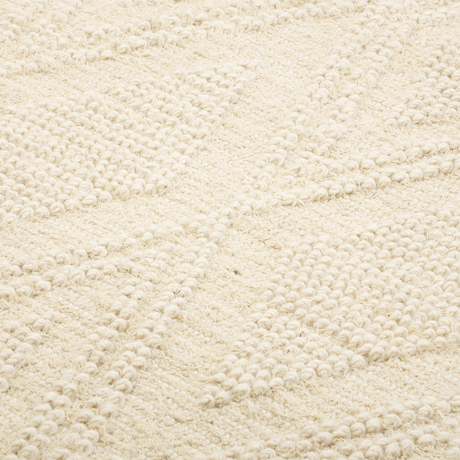 Ковер Shillong из коллекции Ethnic – настоящая находка для ценителей экологичных материалов и простых, лаконичных интерьеров. Благодаря нейтральной цветовой гамме в бежевых тонах и ненавязчивому геометрическому узору это напольное покрытие великолепно вписывается в различные дизайнерские решения и добавляет колоритные нотки этники в любое оформление. Сочетание высококачественной шерсти и износостойкого переработанного хлопка делает ковер прочным, практичным и долговечным. Натуральные материалы обеспечивают безопасное использование, не вызывают аллергических реакций. Размеры: 120х180 см. Плотность: 1900 г/м2. Высота ворса: 15 мм. Подложка: нет. ! Стирка запрещена ! Гладить запрещено ! Барабанная сушка запрещена ! Не отбеливать ! Сухая чистка запрещена ! Допускается ручная чистка пятен Рекомендуем незамедлительно удалять любые загрязнения. Для этого используйте бумажные салфетки или ткань с мыльным раствором воды. Регулярно чистите ковер пылесосом. Не применяйте турбощетку или щетку с жестким ворсом. Если появилась зацепка, не вытягивайте нити из ковра. Для их удаления воспользуйтесь ножницами. Стелите ковер на подложку, чтобы продлить срок его службы и защитить напольное покрытие. Небольшое количество ворса может выпадать – это нормально для ковров из натуральных материалов. Обращаем внимание, что острые предметы, открытый огонь, теплая поверхность и чрезмерная влажность могут испортить внешний вид и негативно повлиять на качественные характеристики изделия. Небольшая разница в цвете и фактуре переработанного текстиля в разных частях ковра делает каждое изделие уникальным. У новых напольных покрытий может присутствовать естественный запах, он абсолютно безопасен и при частом проветривании быстро исчезает. После вскрытия упаковки ковер в течение некоторого времени может сохранять элементы деформации вследствие долгого нахождения в скрученном виде, но уже через 1-2 недели он полностью выпрямится. Ковер может выцветать под воздействием прямых солнечных лучей. Рекомендуем периодически менять расположение изделия, чтобы цвет менялся равномерно.