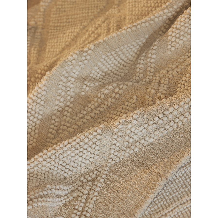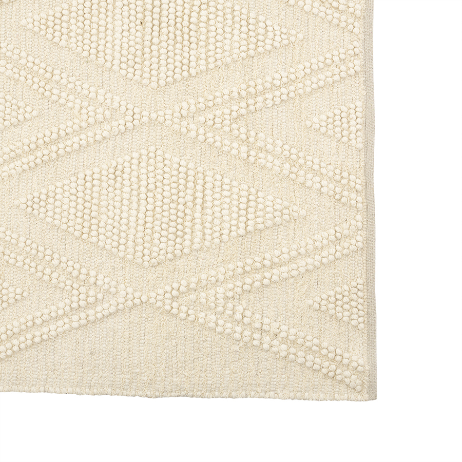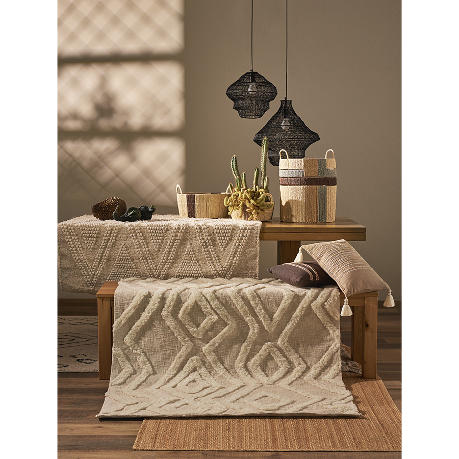 Ковер Shillong из коллекции Ethnic – настоящая находка для ценителей экологичных материалов и простых, лаконичных интерьеров. Благодаря нейтральной цветовой гамме в бежевых тонах и ненавязчивому геометрическому узору это напольное покрытие великолепно вписывается в различные дизайнерские решения и добавляет колоритные нотки этники в любое оформление. Сочетание высококачественной шерсти и износостойкого переработанного хлопка делает ковер прочным, практичным и долговечным. Натуральные материалы обеспечивают безопасное использование, не вызывают аллергических реакций. Размеры: 160х230 см. Плотность: 1900 г/м2. Высота ворса: 15 мм. Подложка: нет. ! Стирка запрещена ! Гладить запрещено ! Барабанная сушка запрещена ! Не отбеливать ! Сухая чистка запрещена ! Допускается ручная чистка пятен Рекомендуем незамедлительно удалять любые загрязнения. Для этого используйте бумажные салфетки или ткань с мыльным раствором воды. Регулярно чистите ковер пылесосом. Не применяйте турбощетку или щетку с жестким ворсом. Если появилась зацепка, не вытягивайте нити из ковра. Для их удаления воспользуйтесь ножницами. Стелите ковер на подложку, чтобы продлить срок его службы и защитить напольное покрытие. Небольшое количество ворса может выпадать – это нормально для ковров из натуральных материалов. Обращаем внимание, что острые предметы, открытый огонь, теплая поверхность и чрезмерная влажность могут испортить внешний вид и негативно повлиять на качественные характеристики изделия. Небольшая разница в цвете и фактуре переработанного текстиля в разных частях ковра делает каждое изделие уникальным. У новых напольных покрытий может присутствовать естественный запах, он абсолютно безопасен и при частом проветривании быстро исчезает. После вскрытия упаковки ковер в течение некоторого времени может сохранять элементы деформации вследствие долгого нахождения в скрученном виде, но уже через 1-2 недели он полностью выпрямится. Ковер может выцветать под воздействием прямых солнечных лучей. Рекомендуем периодически менять расположение изделия, чтобы цвет менялся равномерно.