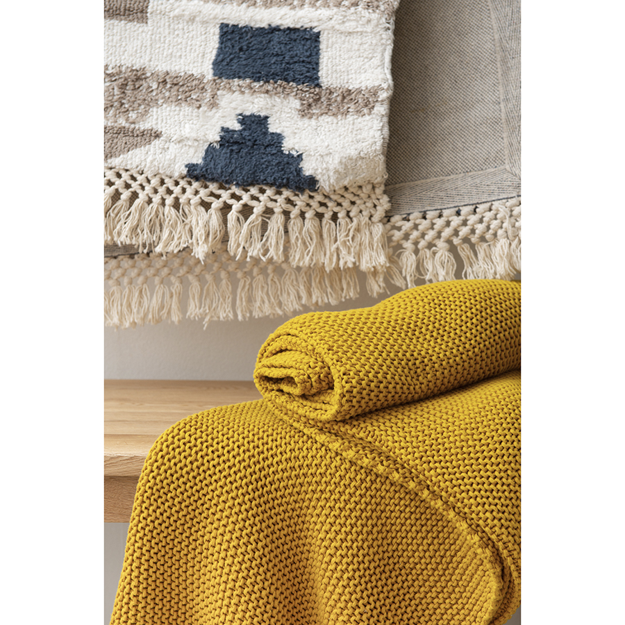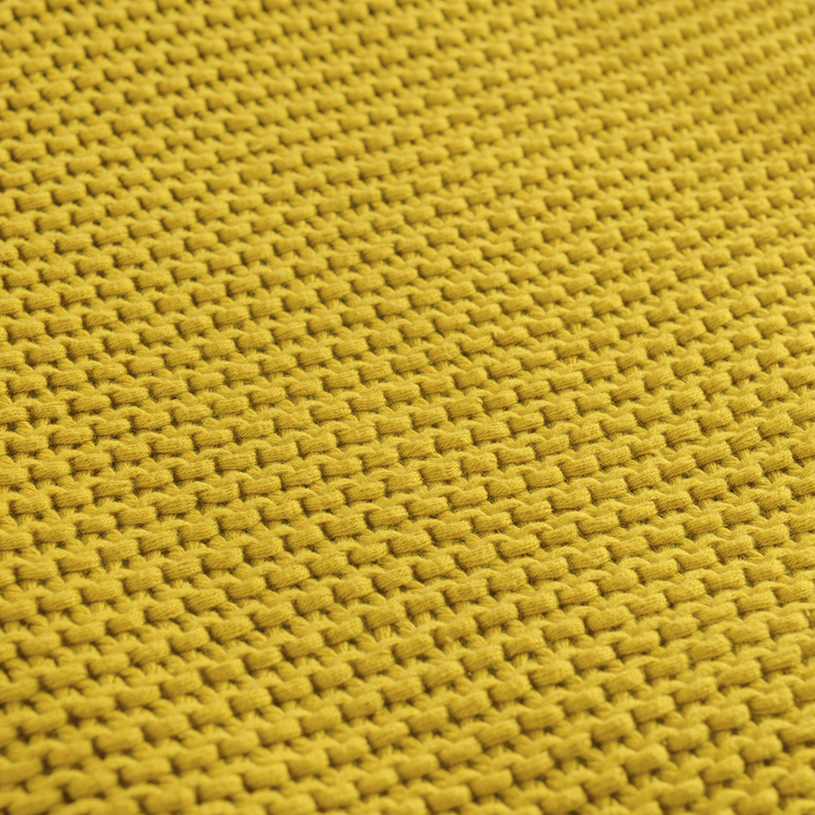 Плед из хлопка жемчужной вязки горчичного цвета из коллекции essential, 130х180 см