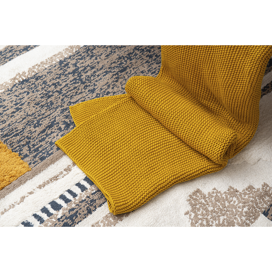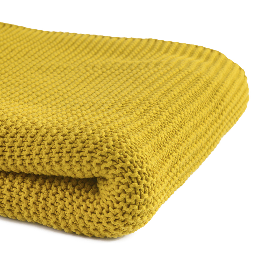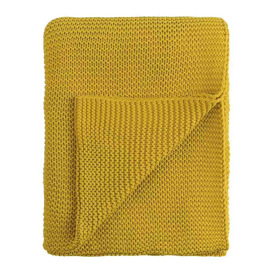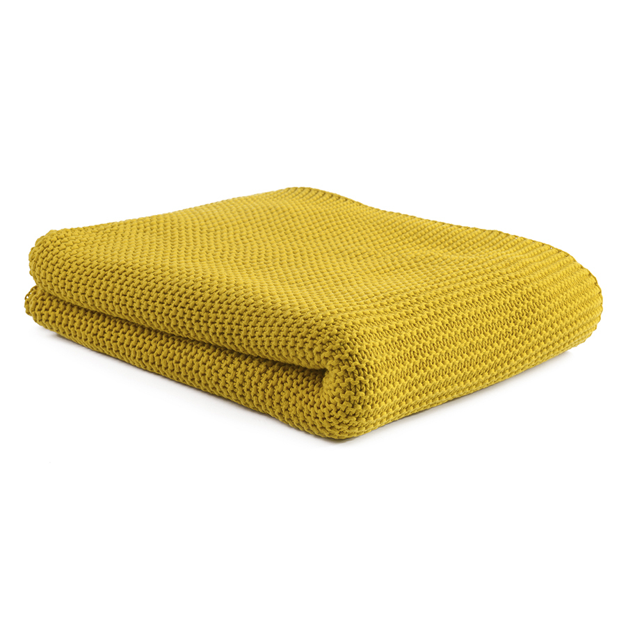 Плед из хлопка жемчужной вязки горчичного цвета из коллекции essential, 130х180 см - купить по цене 7 990 руб в интернет-магазине StoreForHome.ru