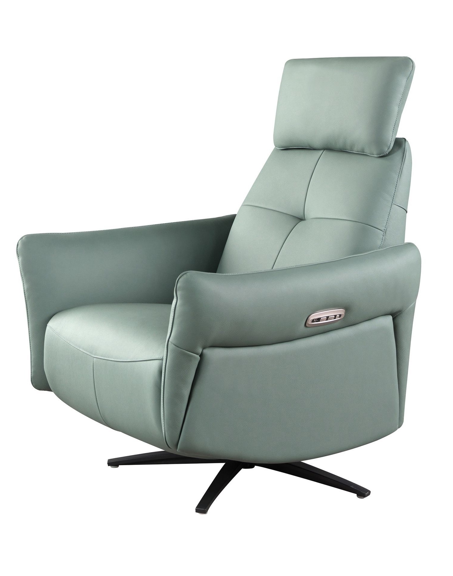 Вращающееся кресло-реклайнер 5174 из бирюзово-зелёной кожи Испания
