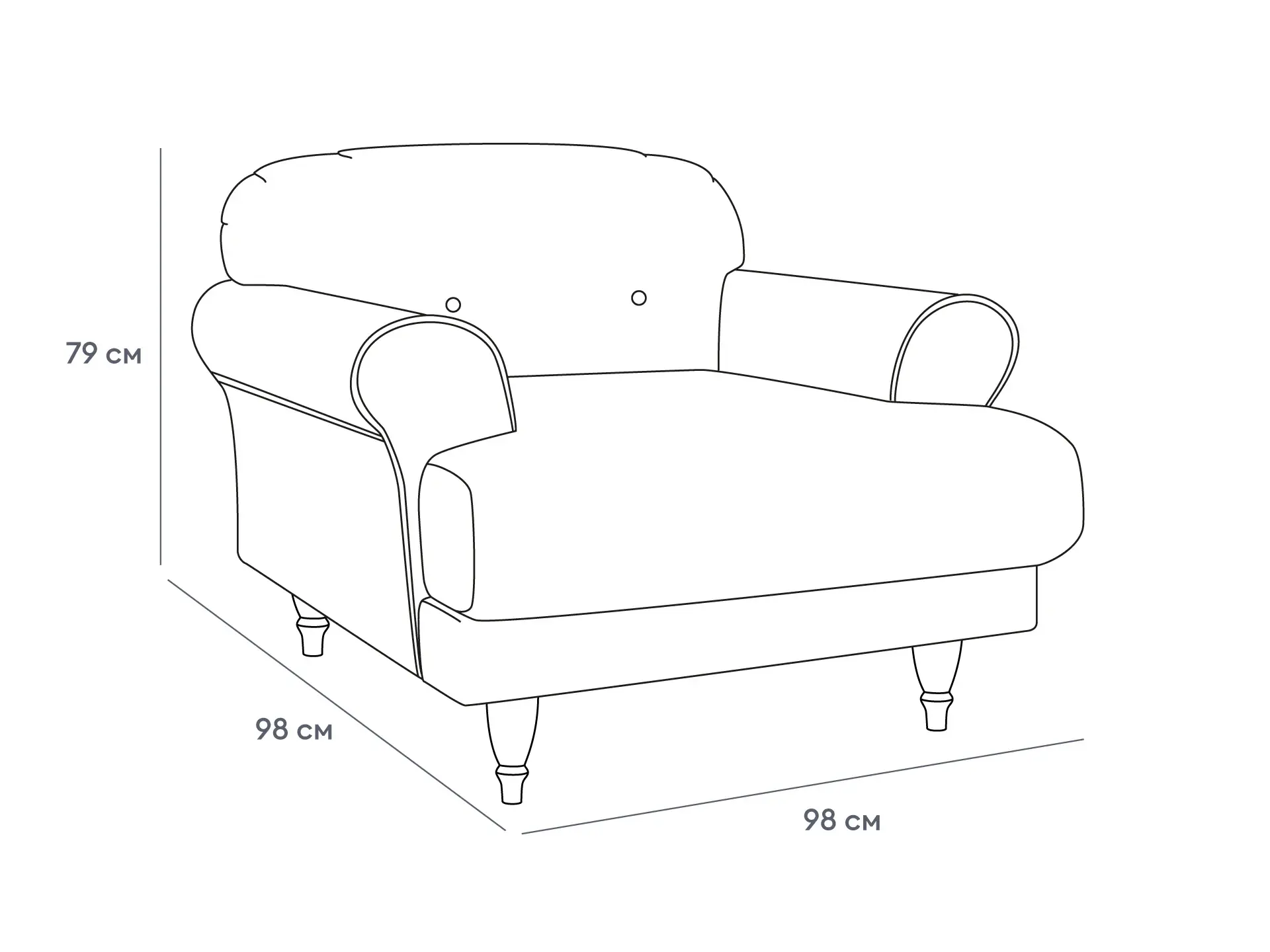 Мягкое кресло Italia на деревянных ножках. Спинка симметрично декорирована пуговицами. Дизайн сочетает в себе черты классики, модерна и ретростиля. Резные деревянные ножки приподнимают кресло над полом, создавая просвет и наполняя помещение дополнительным воздухом. Что дает возможность визуально увеличить пространство. Невысокая спинка, закруглённые объёмные подлокотники, широкое сиденье создают эргономичную архитектуру кресла. Модель создана с учетом анатомических особенностей, поэтому в кресле Italia можно максимально расслабиться и ощутить настоящее умиротворение.|Надёжность и долговечность изделия обеспечивает комбинированный каркас из деревянного бруса, МДФ и фанеры. Упругость сиденья и спинки поддерживают пенополиуретан и синтепон. У этих материалов уникальная плотная текстура, сочетающая мягкость и прочность. Обивка из 100 % полиэстера не склонна к образованию пиллинга, затяжек, отлично поддается чистке. Цвет – на ваш выбор. Эффектное кресло Italia станет любимцем в доме, стоит только оказаться в его нежных объятиях.