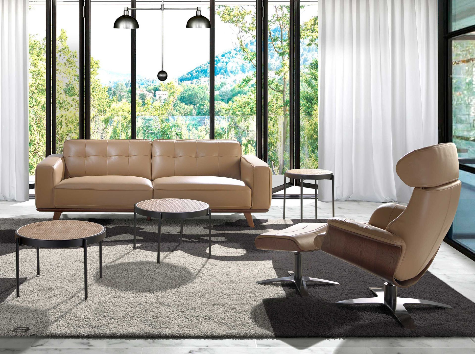 Поворотное кресло 5087/A928-M5668 с обивкой из песочной кожи Испания