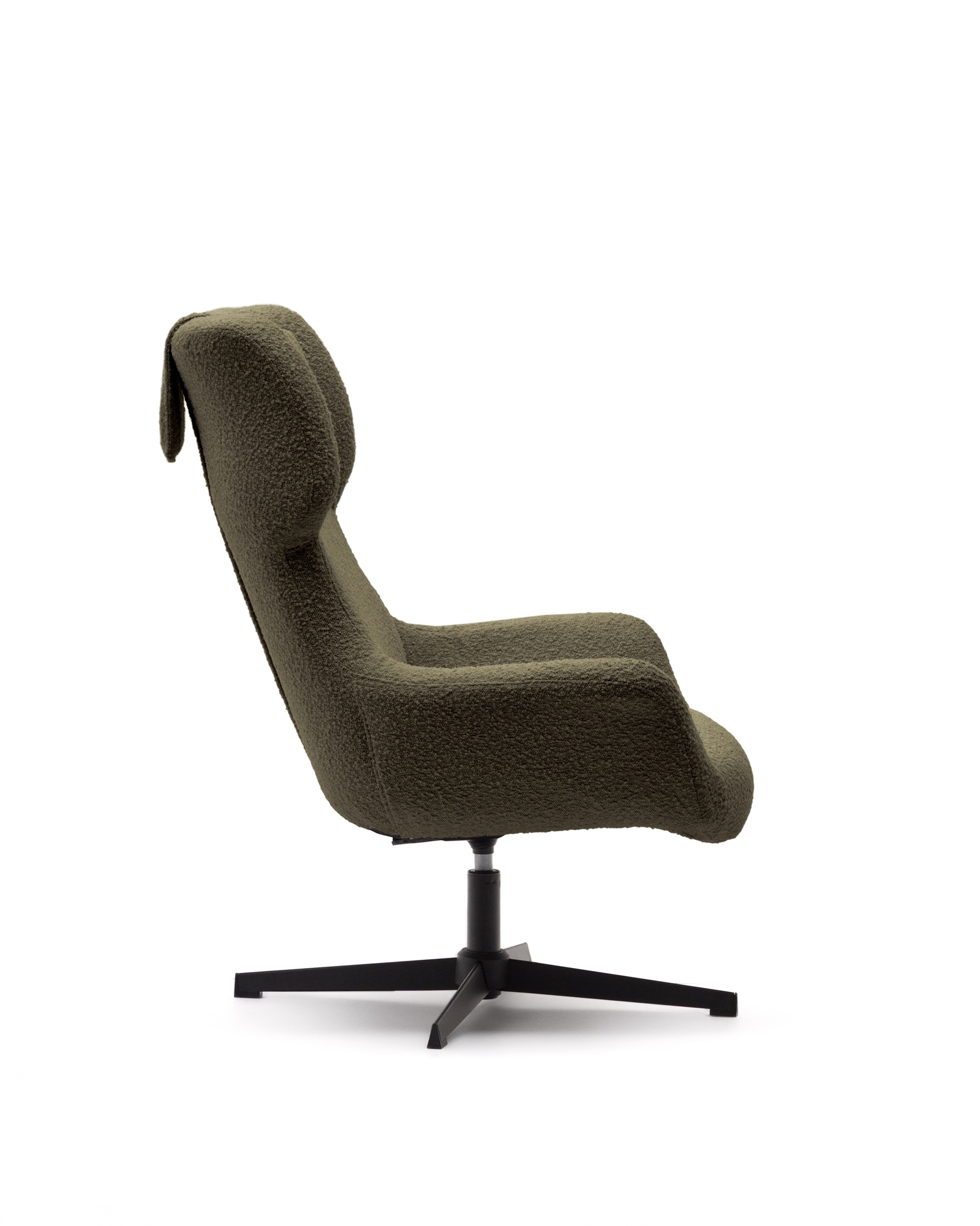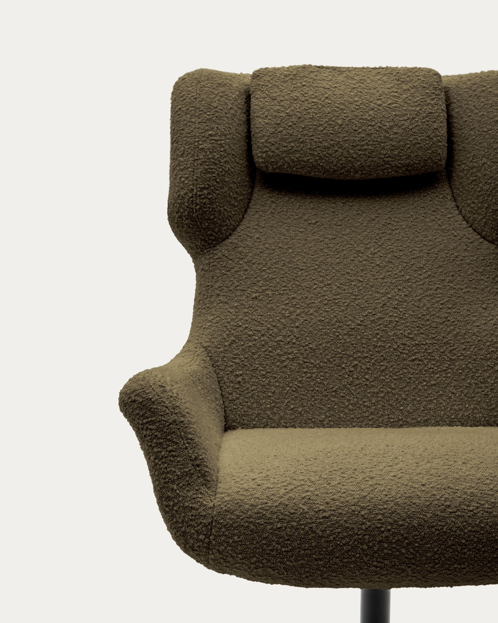 Zalina Вращающееся кресло с подлокотниками из темно-зеленой ткани букле