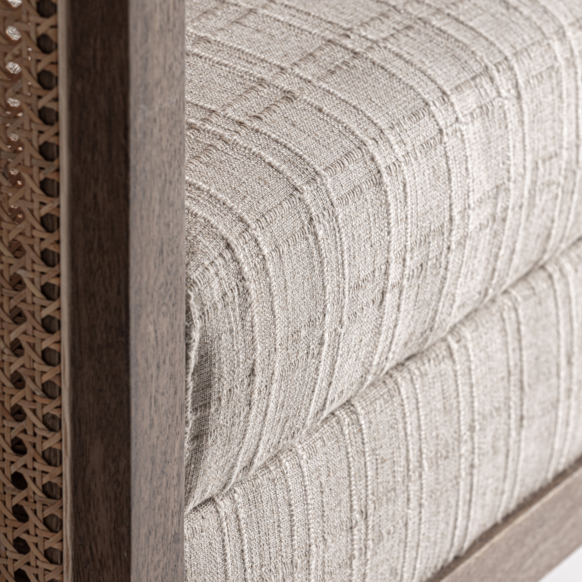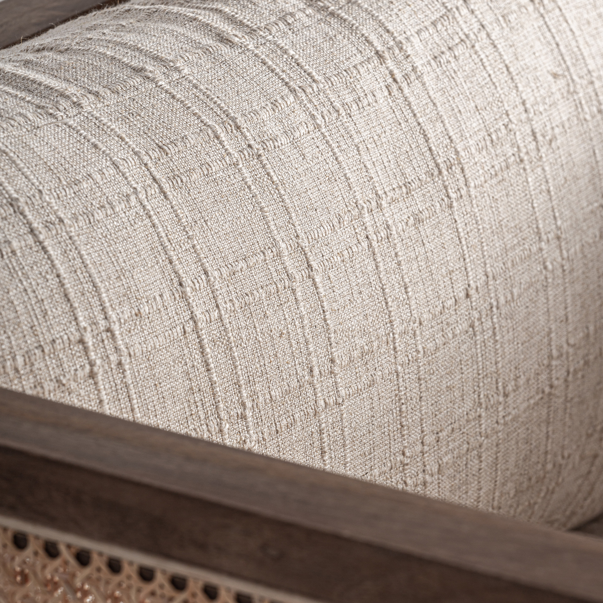 Кресло изготовлено из коричневого мангового дерева в сочетании с серо-коричневым полиэстером и поролоном. Ширина: 73 см, Глубина: 73 см, Высота: 77 см