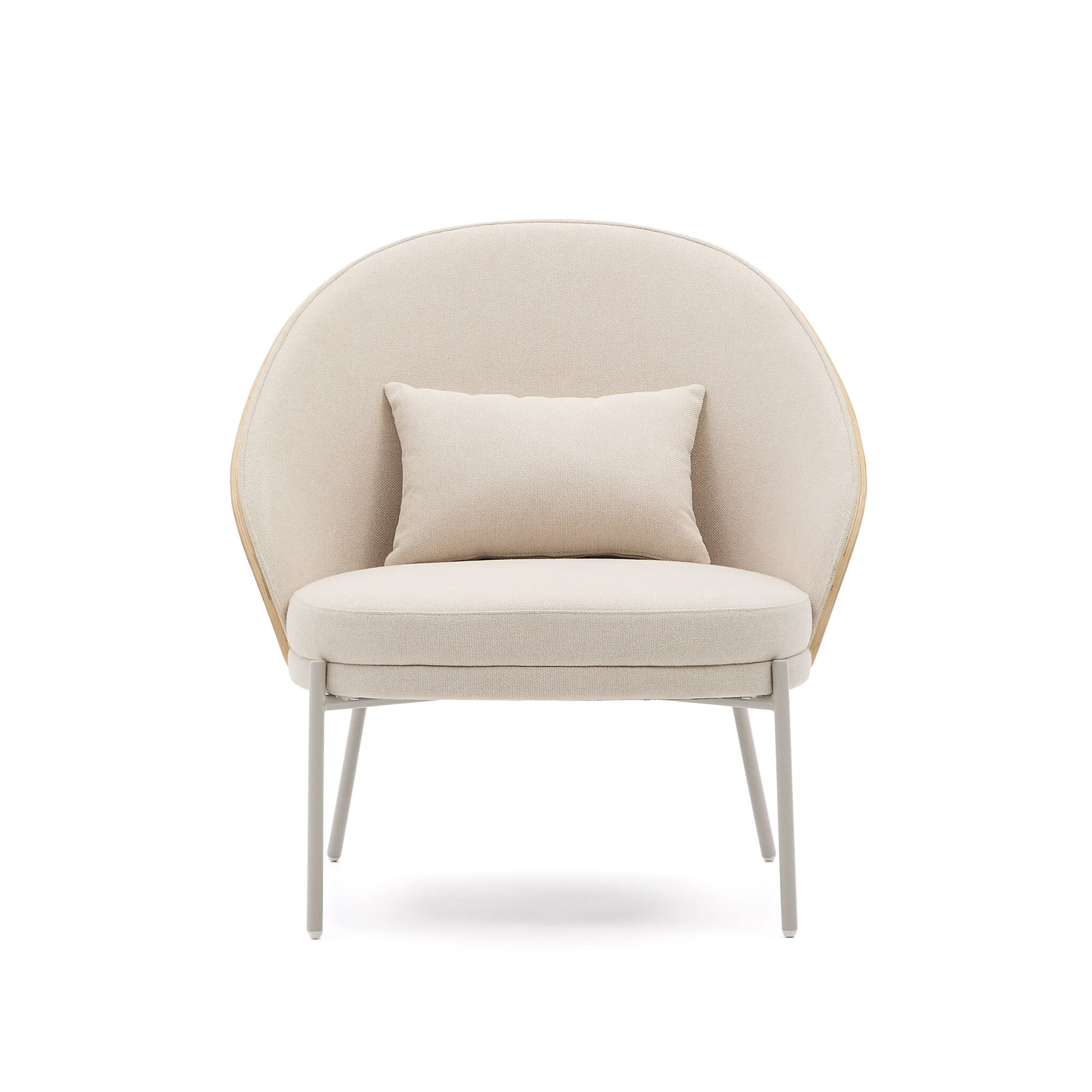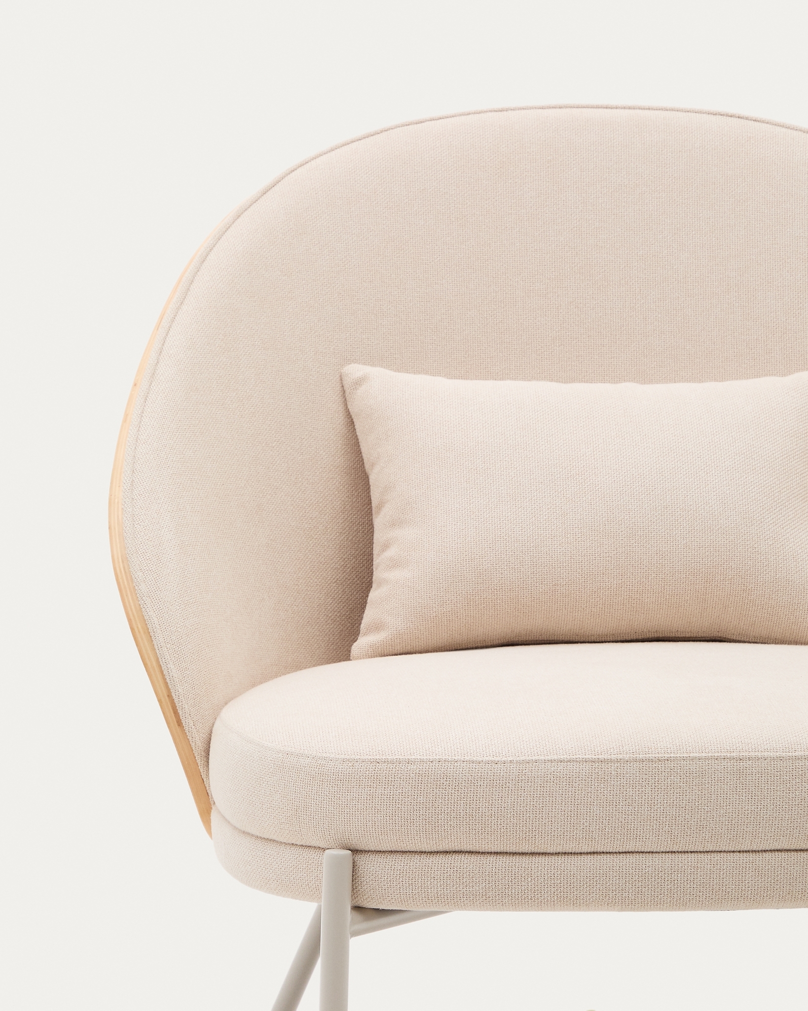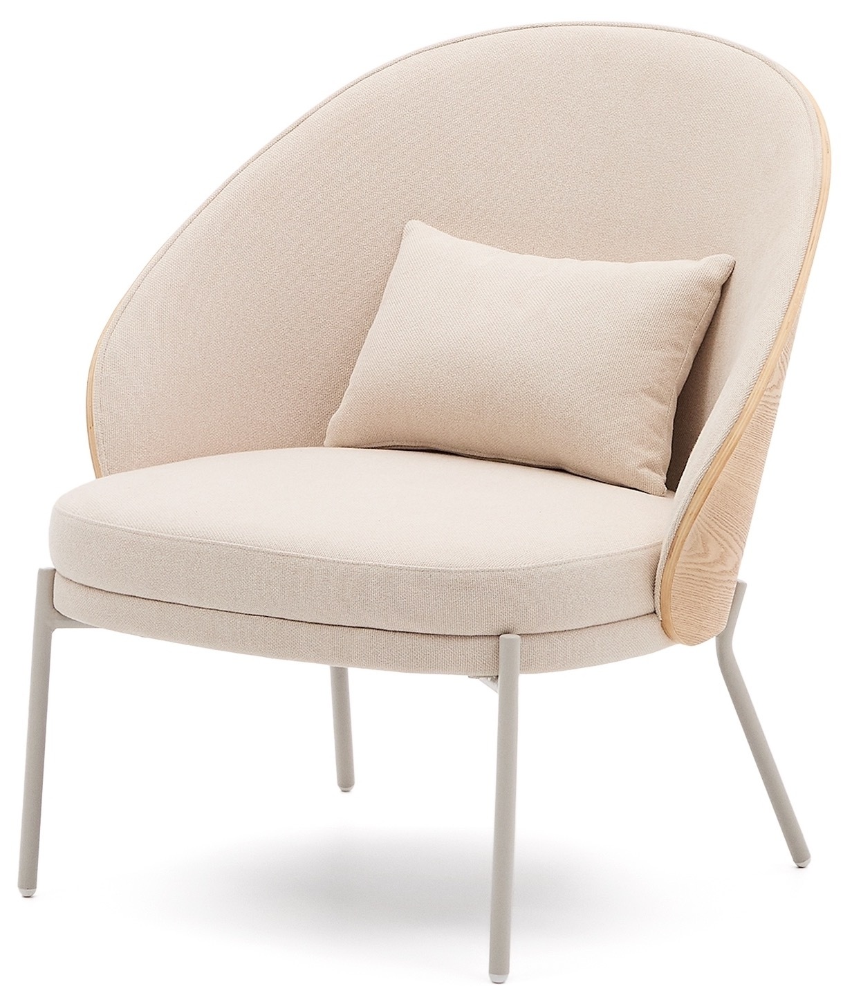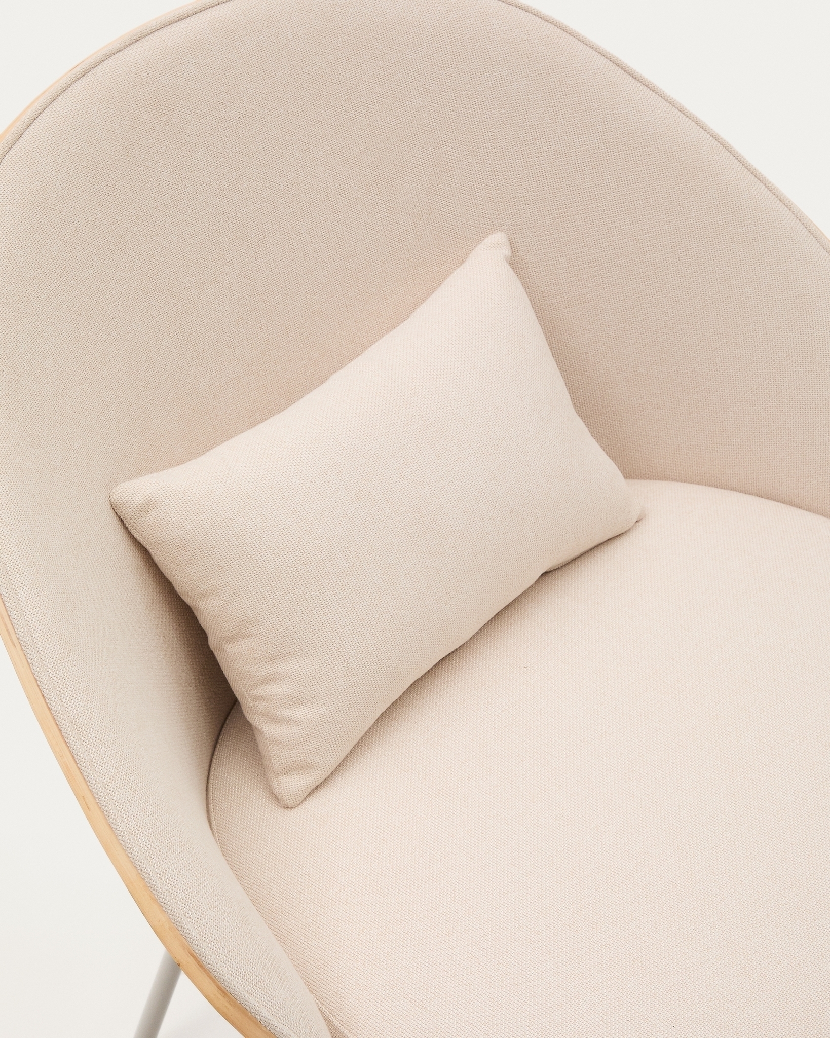Кресло Eamy бежевая синель, ясеневый шпон и бежевый металл