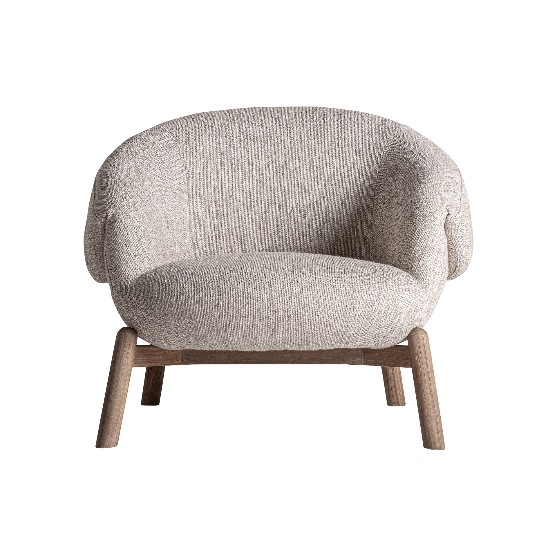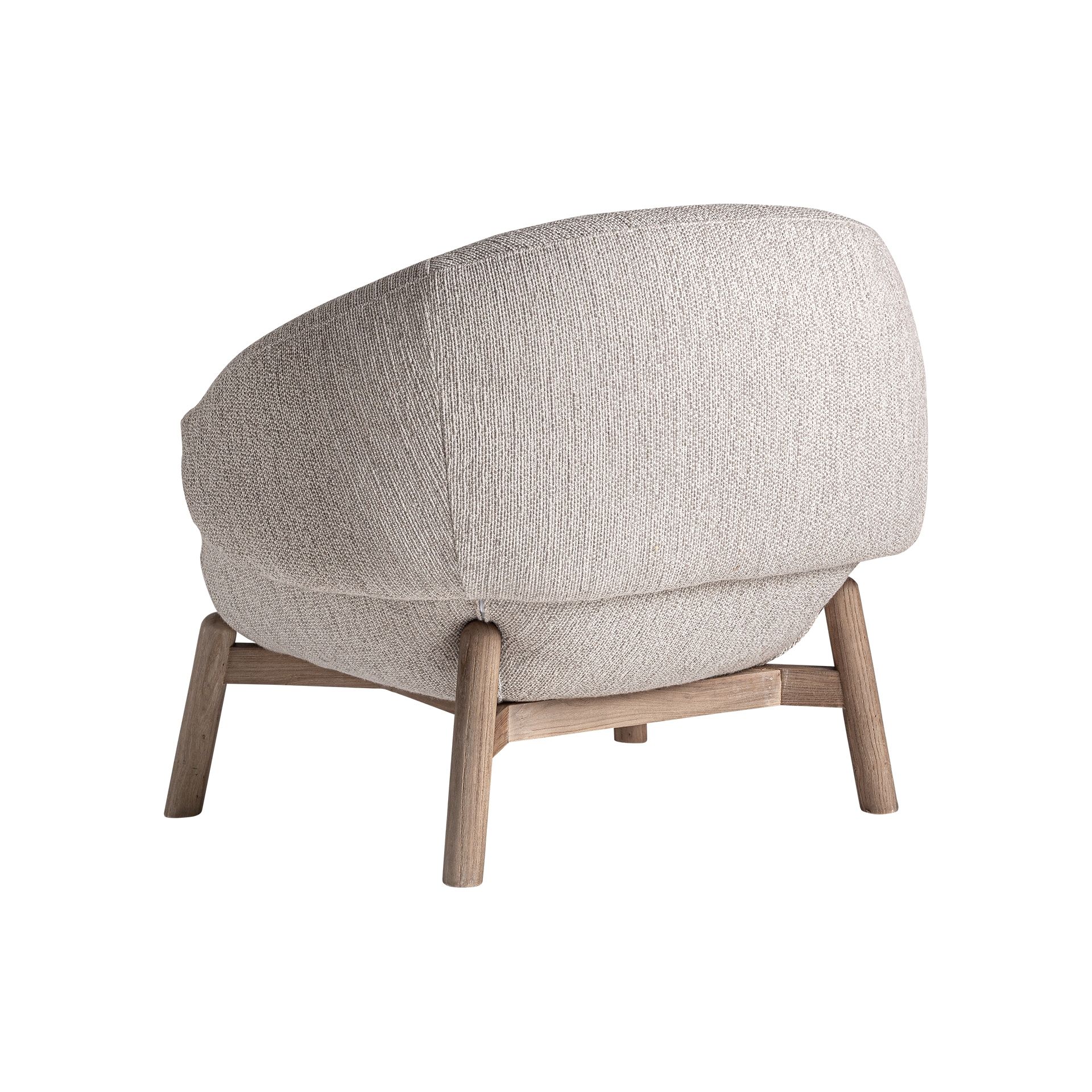 Современное жаккардовое кресло. Изготовлено из светло-коричневого дуба в сочетании с бежевым полиэстером.