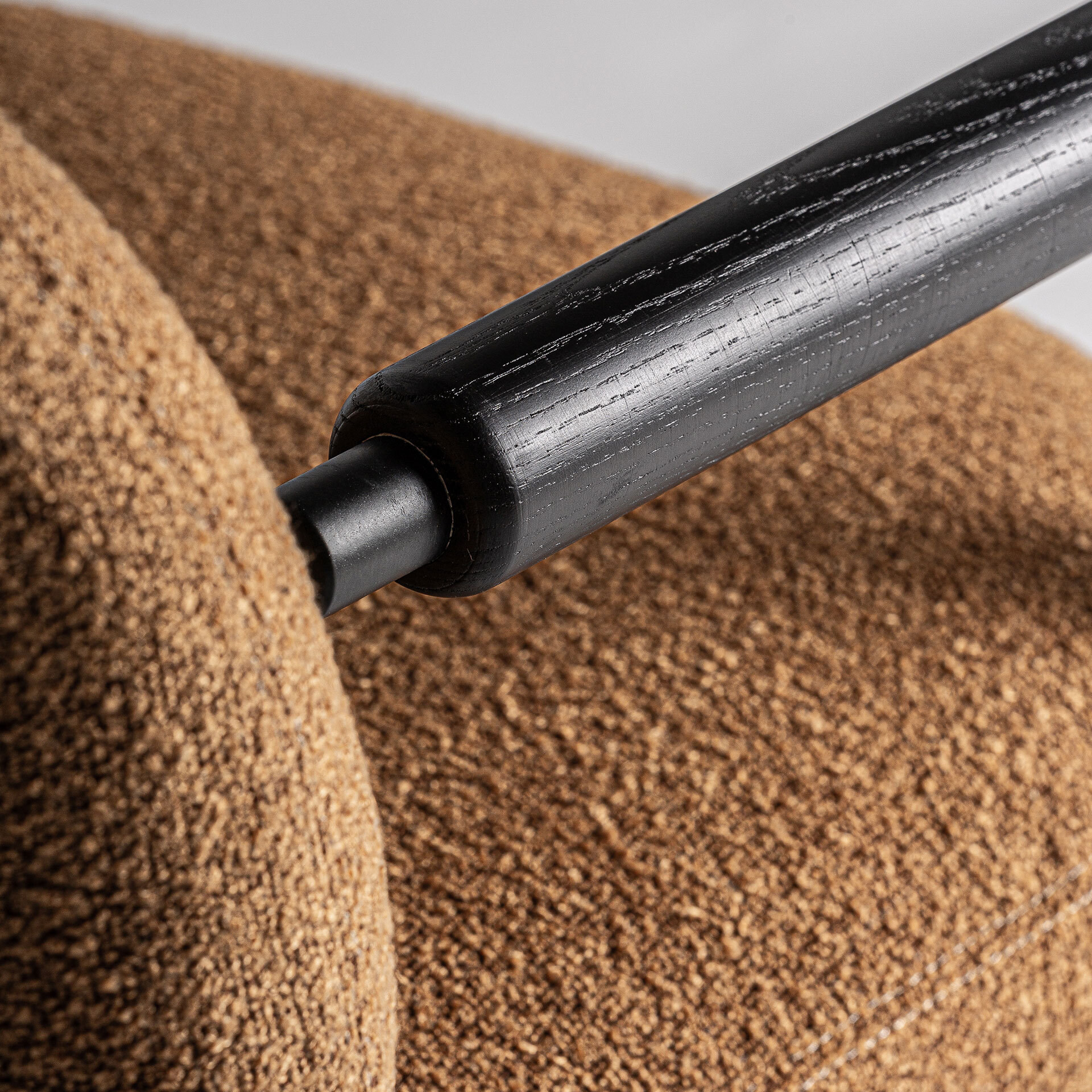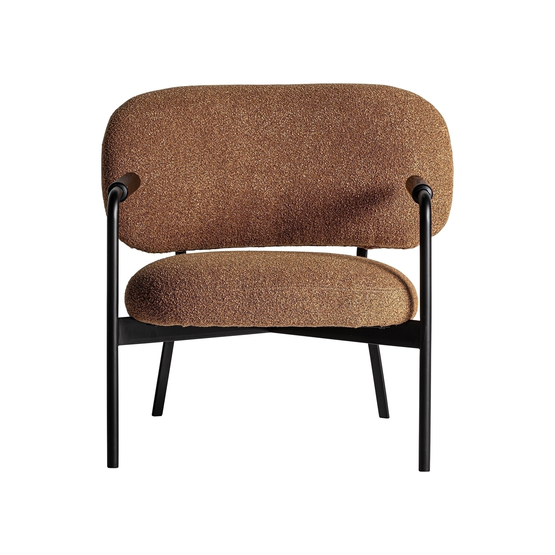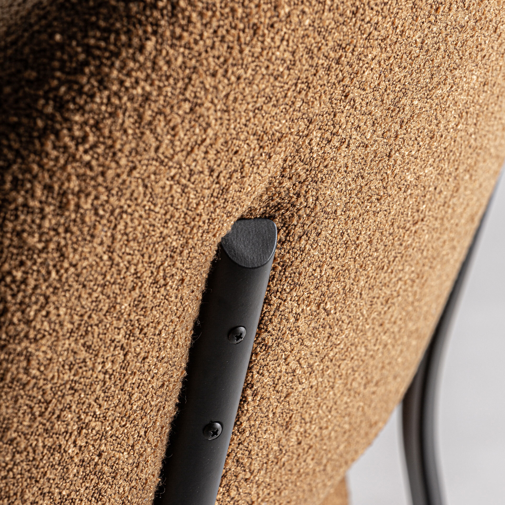 Кресло Jessie в современном стиле, изготовлено из черной сосны в сочетании с полиэстером цвета охры с пятнистой отделкой и черным металлом.
