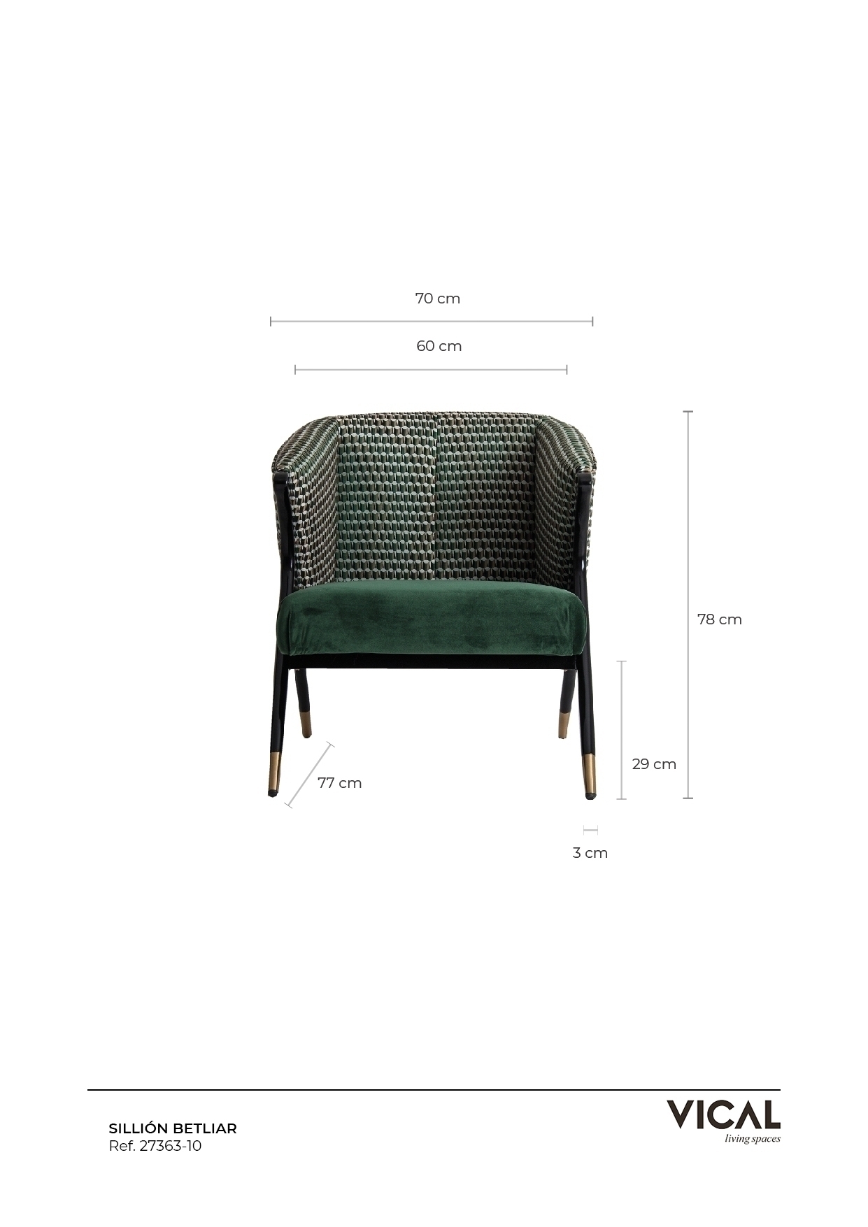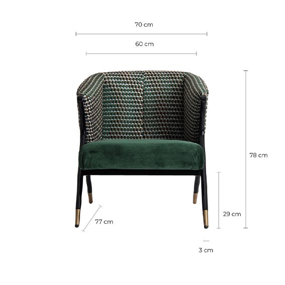 Кресло Kelheim от дома VICAL — это выражение современности. Это современное бархатное кресло размером 73x83x80 см сочетает в себе мягкость зеленого бархата с прочностью соснового дерева, предлагая роскошное сиденье, которое одновременно радует глаз и обеспечивает непревзойденный комфорт.