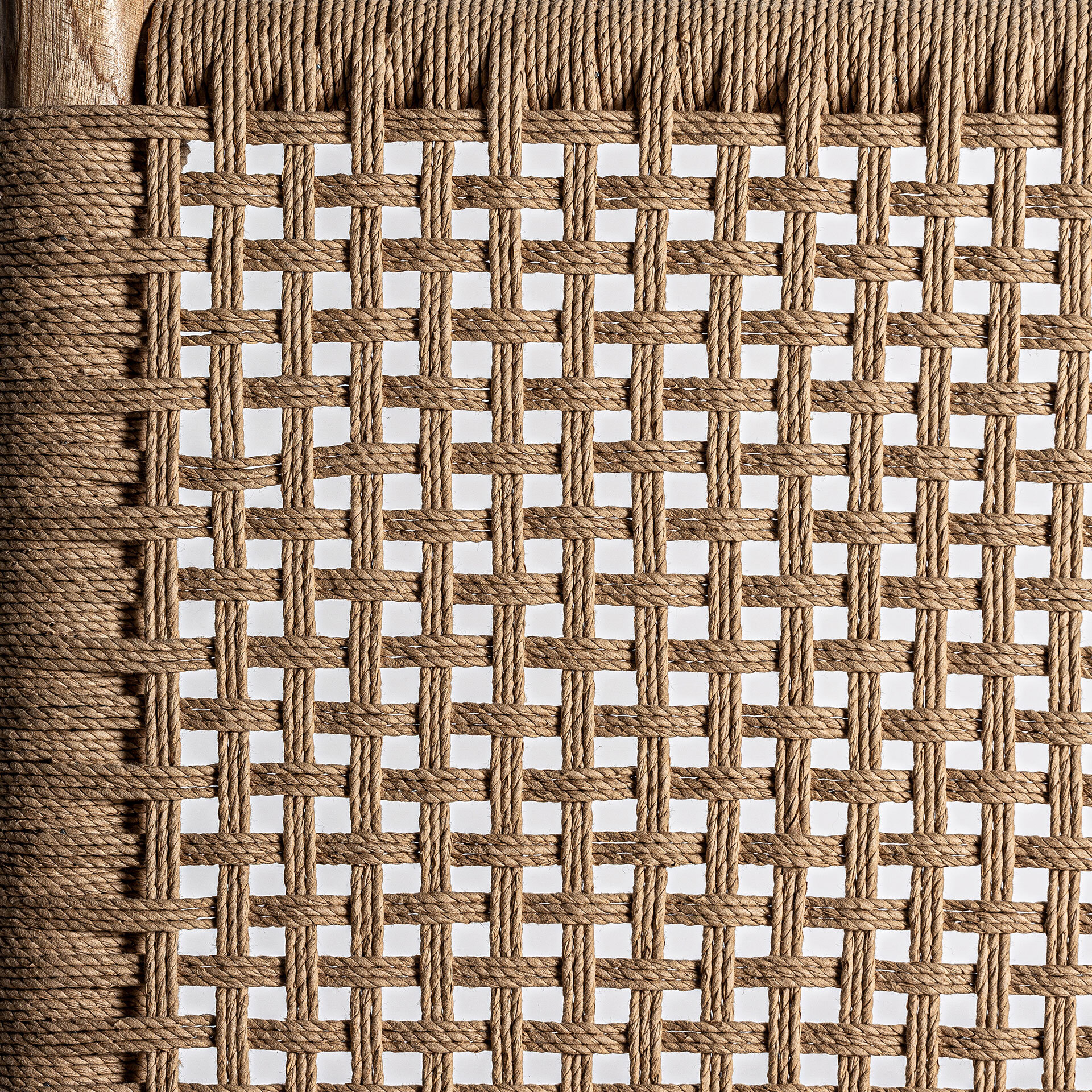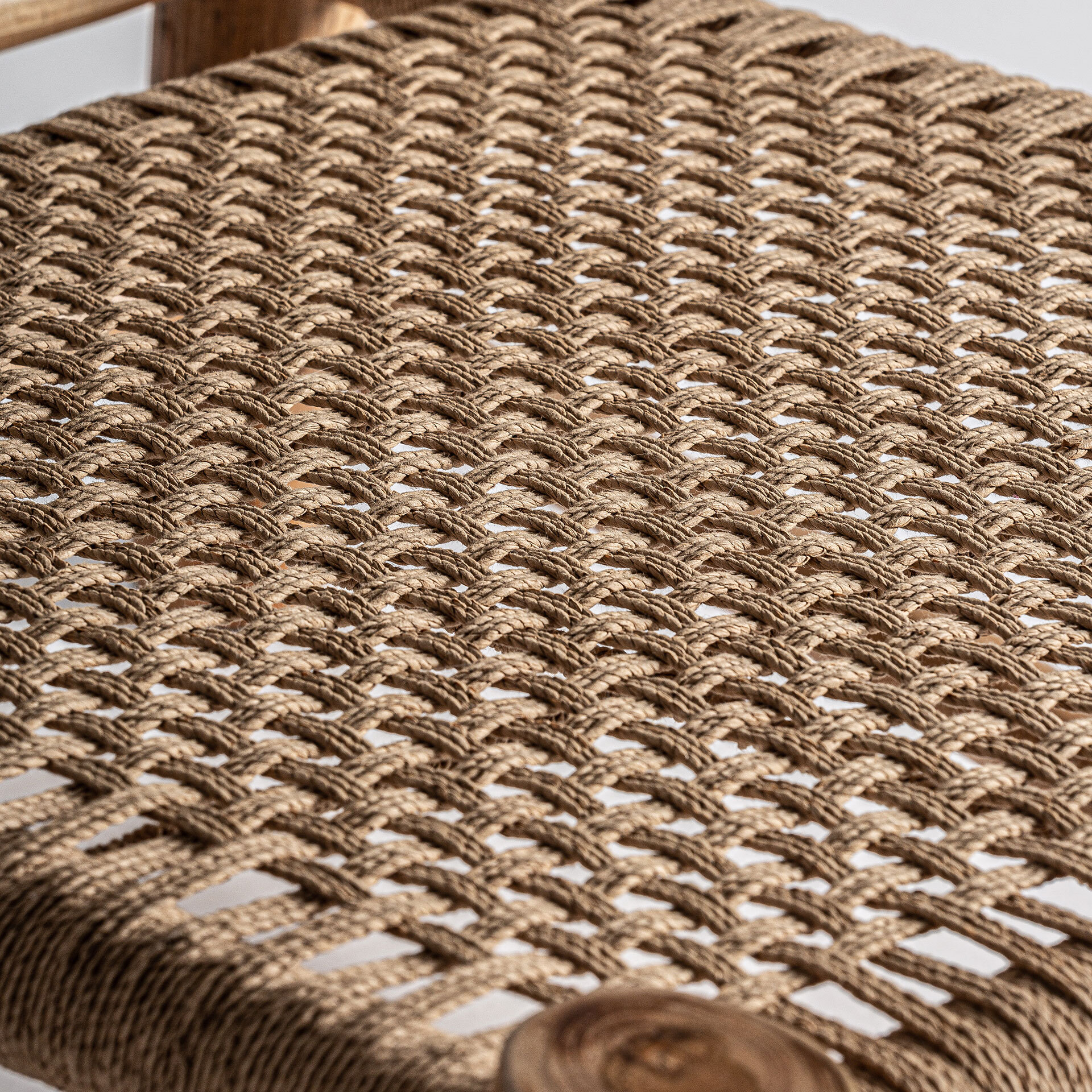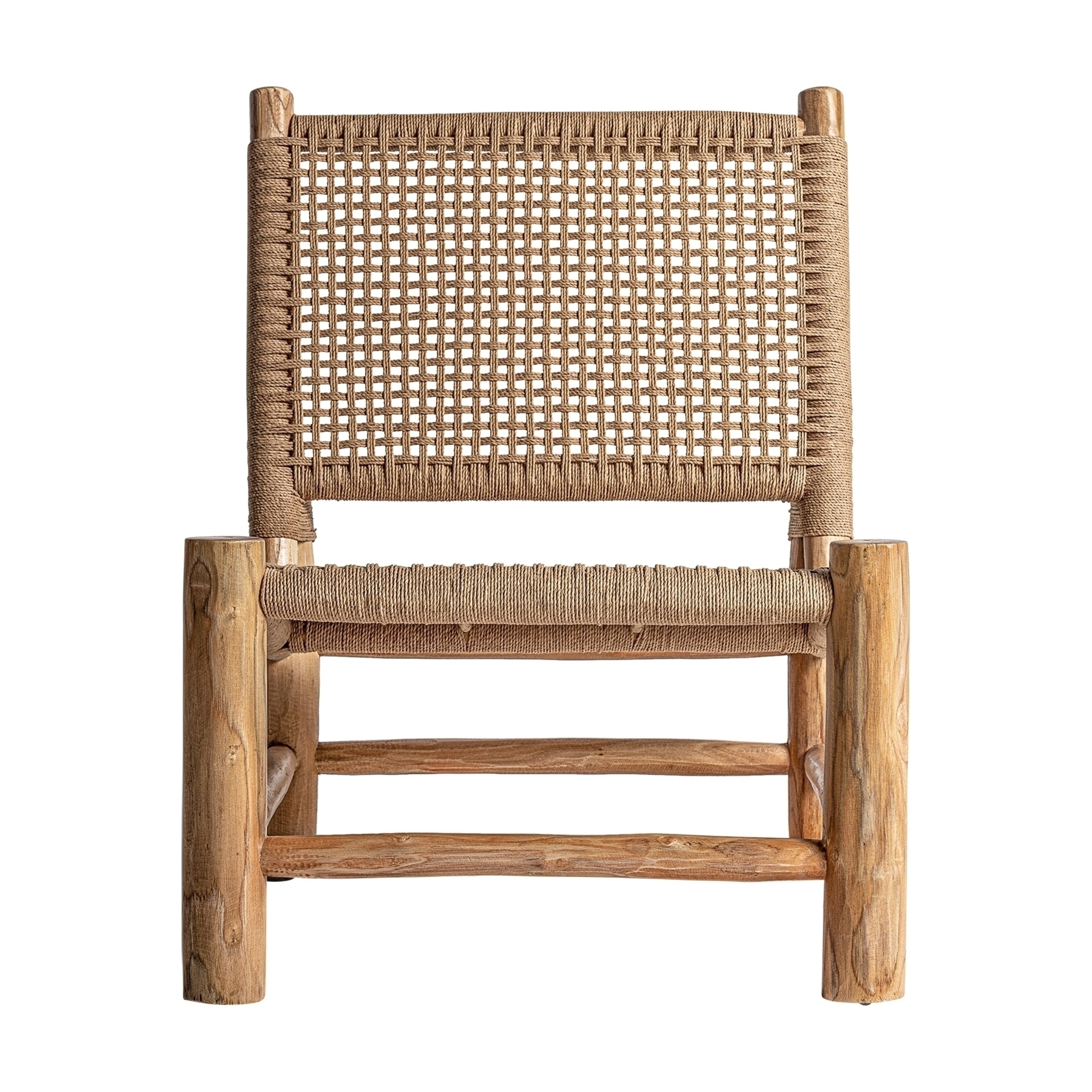 Кресло MOUZAKI, коричневого цвета, стиль винтаж. Изготовлен из тикового дерева в сочетании с натуральным волокном.
