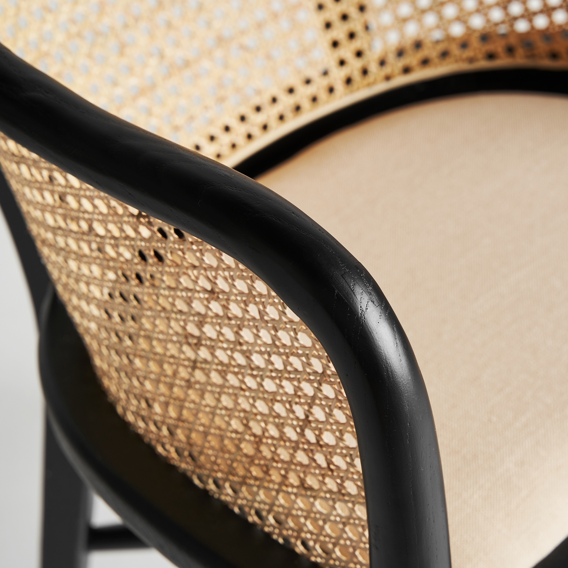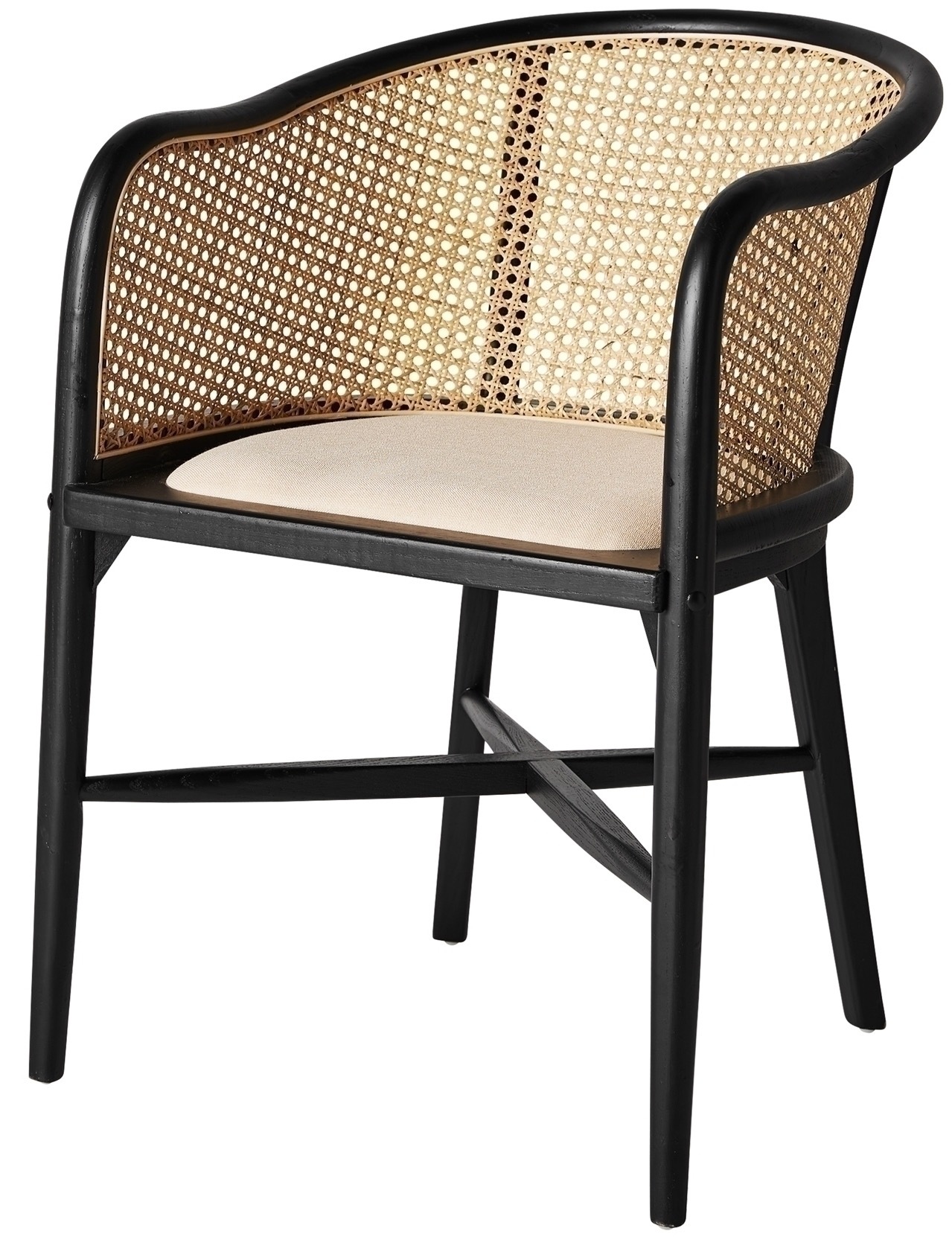 Кресло Nuchis в черном/натуральном цвете, в современном стиле. Изготовлен из березового дерева в сочетании с льном.