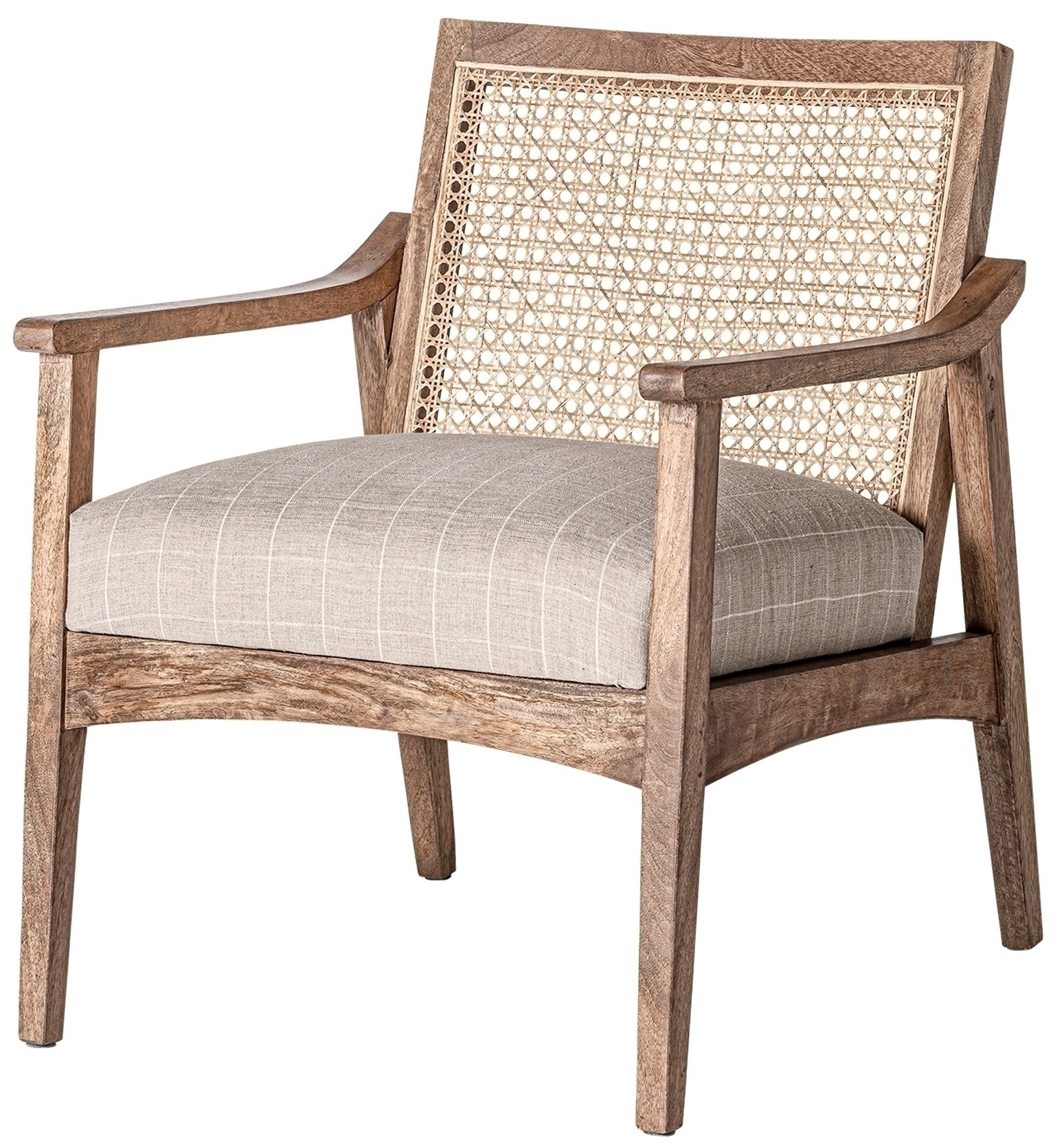 Кресло Valhey, натурального цвета, колониальный стиль. Изготовлен из древесины манго в сочетании с полиэстером и ротангом.
