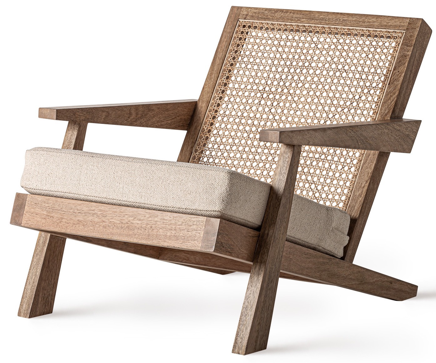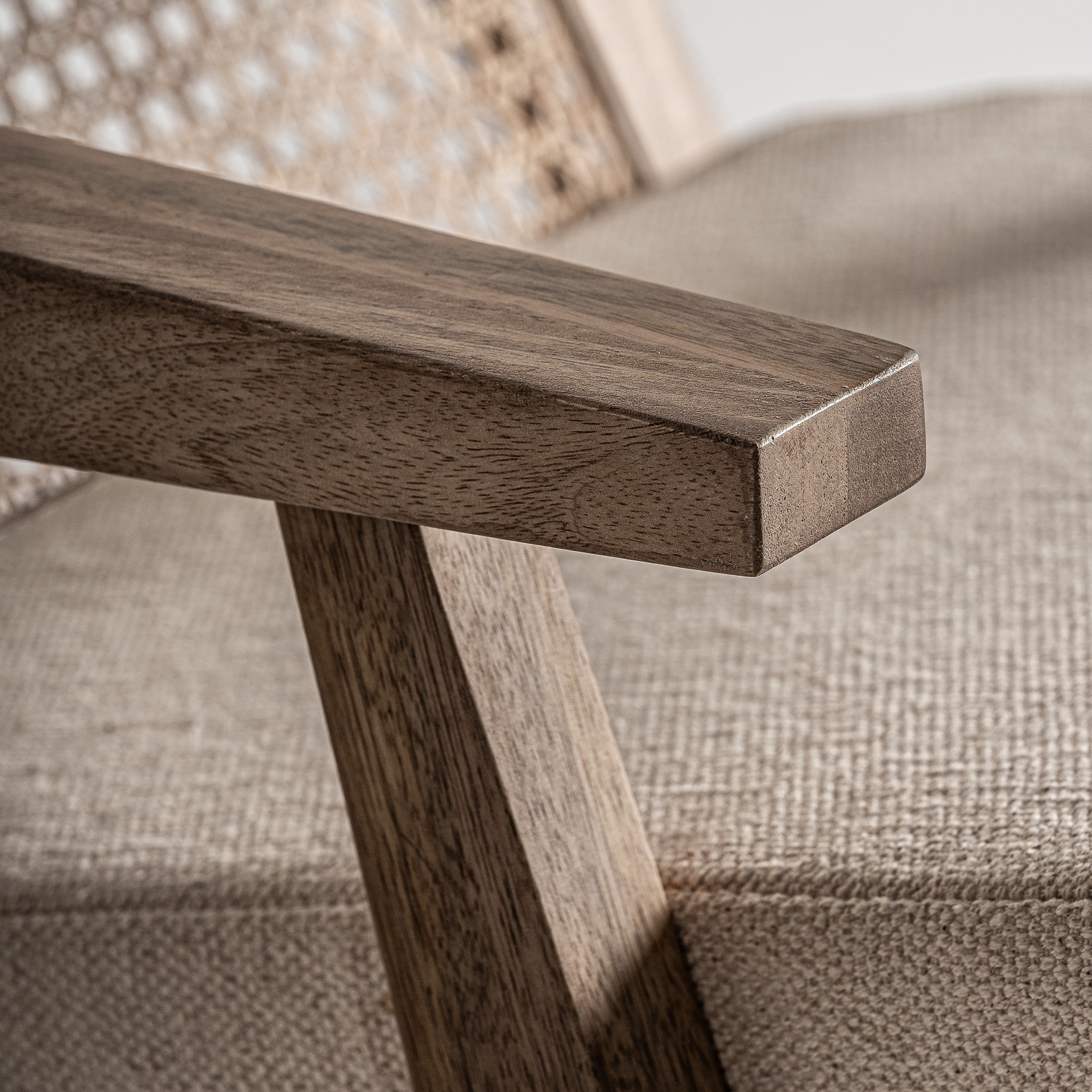 Кресло Wesweil в стиле ар-деко, изготовлено из коричневого мангового дерева в сочетании с бежевым DM-деревом.