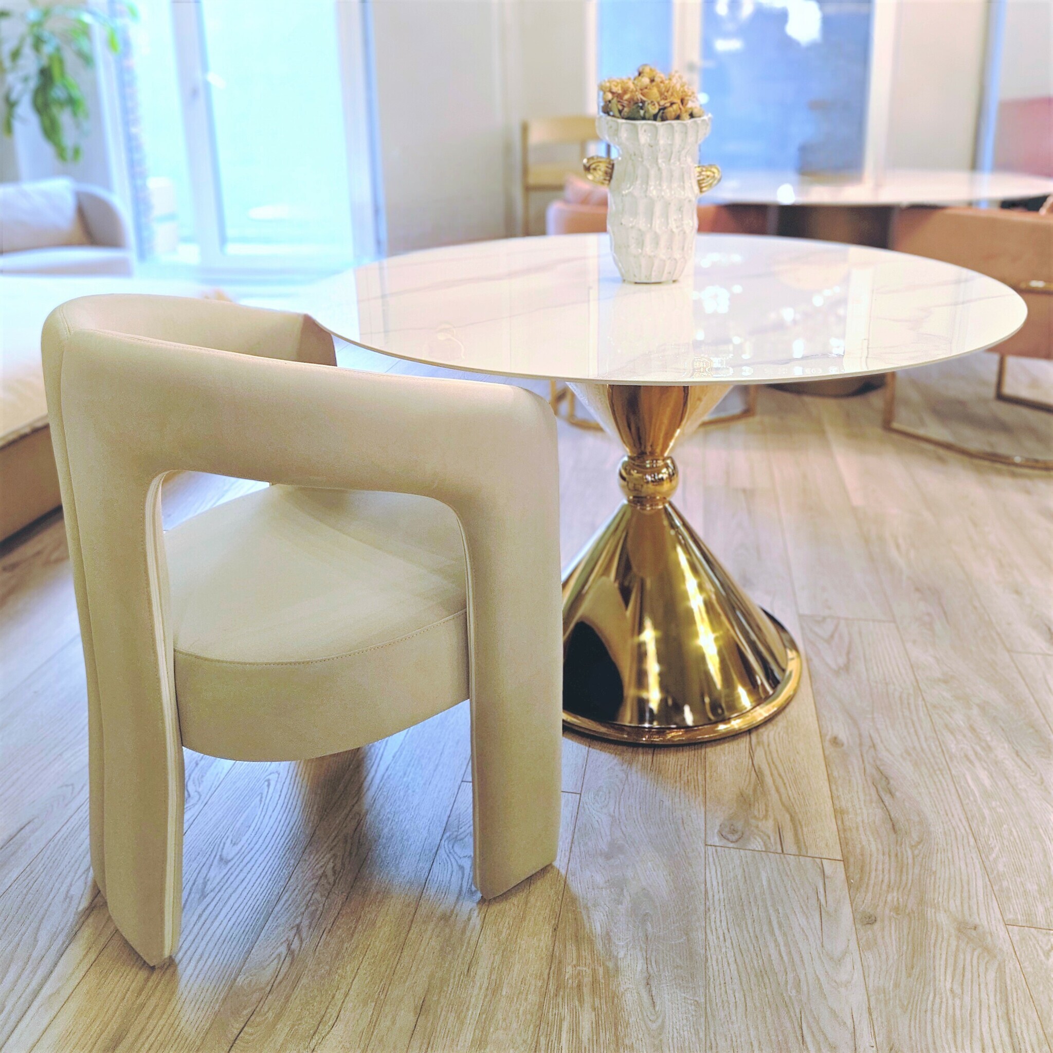 Предлагаем вашему вниманию стильное и комфортное кресло Dudet L из приятной на ощупь ткани - песочного цвета велюра. Эта модель станет отличным дополнением к интерьеру любой гостиной или спальной комнаты. Благодаря своему элегантному дизайну и удобству использования, оно прекрасно подойдет как для личного пользования, так и может стать прекрасным подарком близкому человеку. В нашем магазине вы найдете широкий выбор мебели высокого качества по доступным ценам. Приобретая у нас товар, будьте уверены, что он будет радовать вас долгие годы своим непревзойденным внешним видом и функциональностью!