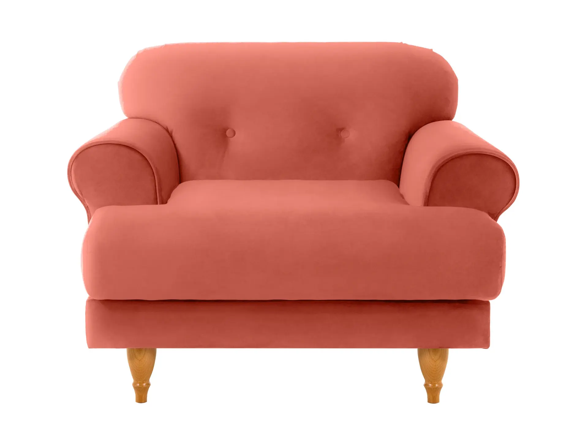 Мягкое кресло Italia на деревянных ножках. Спинка симметрично декорирована пуговицами. Дизайн сочетает в себе черты классики, модерна и ретростиля. Резные деревянные ножки приподнимают кресло над полом, создавая просвет и наполняя помещение дополнительным воздухом. Что дает возможность визуально увеличить пространство. Невысокая спинка, закруглённые объёмные подлокотники, широкое сиденье создают эргономичную архитектуру кресла. Модель создана с учетом анатомических особенностей, поэтому в кресле Italia можно максимально расслабиться и ощутить настоящее умиротворение.|Надёжность и долговечность изделия обеспечивает комбинированный каркас из деревянного бруса, МДФ и фанеры. Упругость сиденья и спинки поддерживают пенополиуретан и синтепон. У этих материалов уникальная плотная текстура, сочетающая мягкость и прочность. Обивка из 100 % полиэстера не склонна к образованию пиллинга, затяжек, отлично поддается чистке. Цвет – на ваш выбор. Эффектное кресло Italia станет любимцем в доме, стоит только оказаться в его нежных объятиях.
