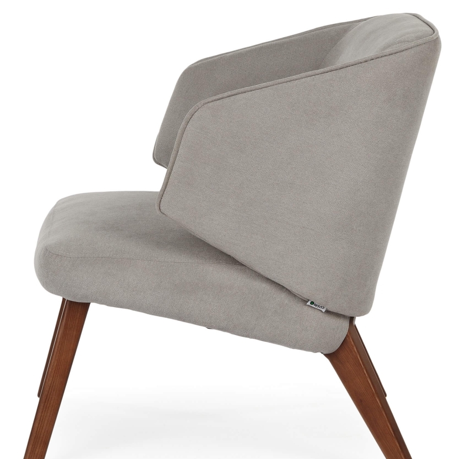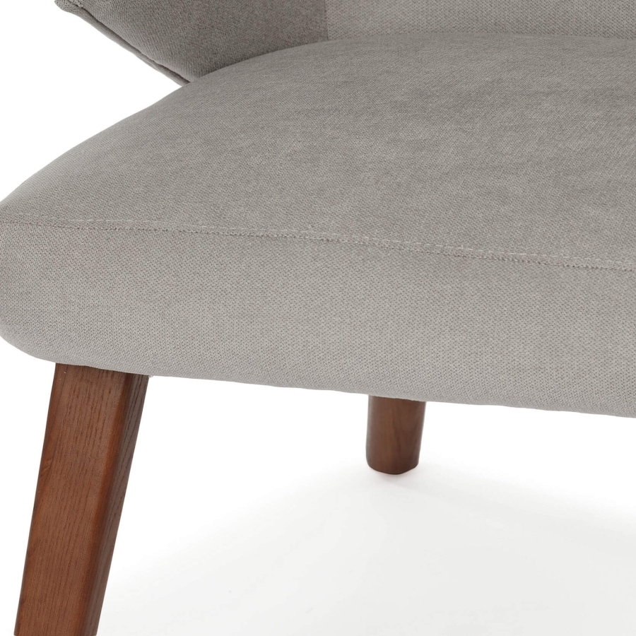 Светло-серый материал как утренний туман, который мягко окутывает ваше тело, создавая иллюзию невесомости. Ореховый ясень богатый и модный элемент кресла, что несет в себе тепло природы и стабильность корней.
