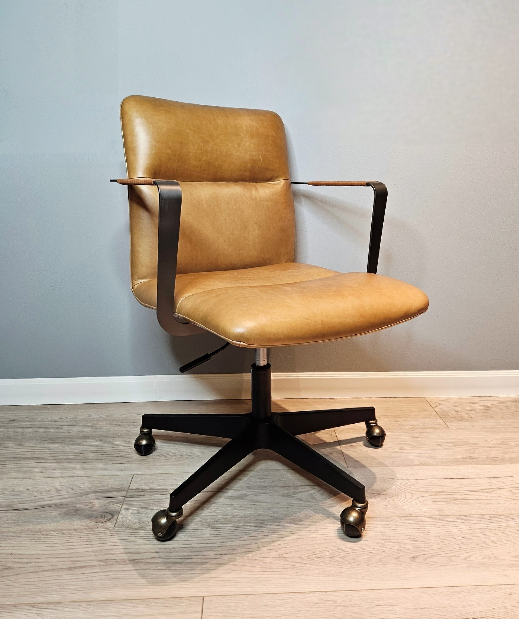 Кресло RS391 — это гармония благородной эстетики и бескомпромиссного комфорта, которая преобразит ваш интерьер. Оно создано для ценителей эксклюзивных вещей: натуральная кожа высшего качества, сохраняющая свою естественную фактуру, со временем покрывается уникальной патиной, делая ваше кресло по-настоящему неповторимым. Мягкий наполнитель из пенополиуретана дарит ощущение невесомости, а плавное вращение и бесшумные колесики обеспечивают полную свободу передвижения.
