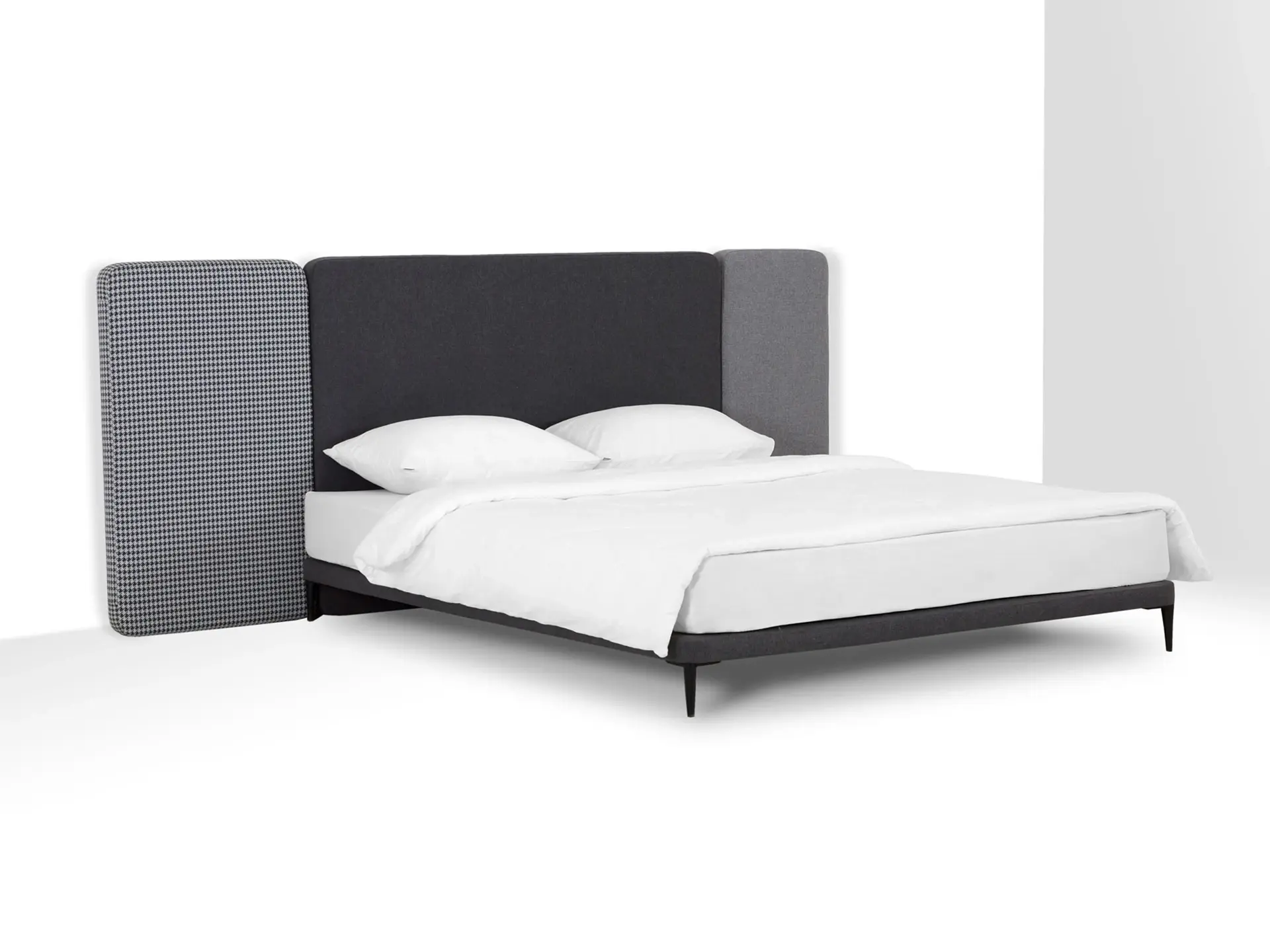 Кровать можно персонализировать при помощи навесных панелей 5 конфигураций. Имеют разную ширину и выполняются в любых цветовых сочетаниях. Крепятся к стене с помощью металлических навесов с регулировкой по высоте. Панели комбинируются по-разному и адаптируются к спальням любых размеров. Можно оформить как традиционное высокое изголовье, так и большой «мягкий уголок». Который сделает вашу территорию идеального сна уютнее, теплее, а также подарит чувство защищенности и расслабления. Кровать Licata органично впишется в пространства разной стилистики от современной классики до минимализма и поможет вам максимально насладиться домашним комфортом.
