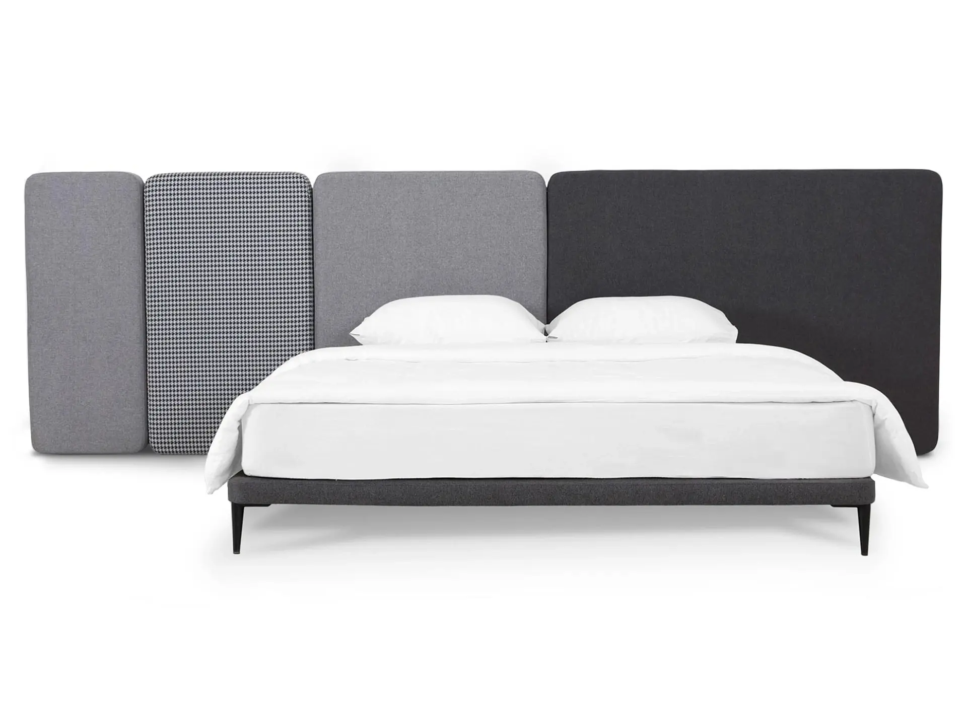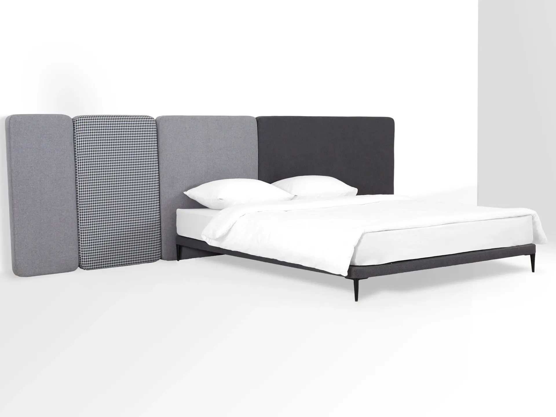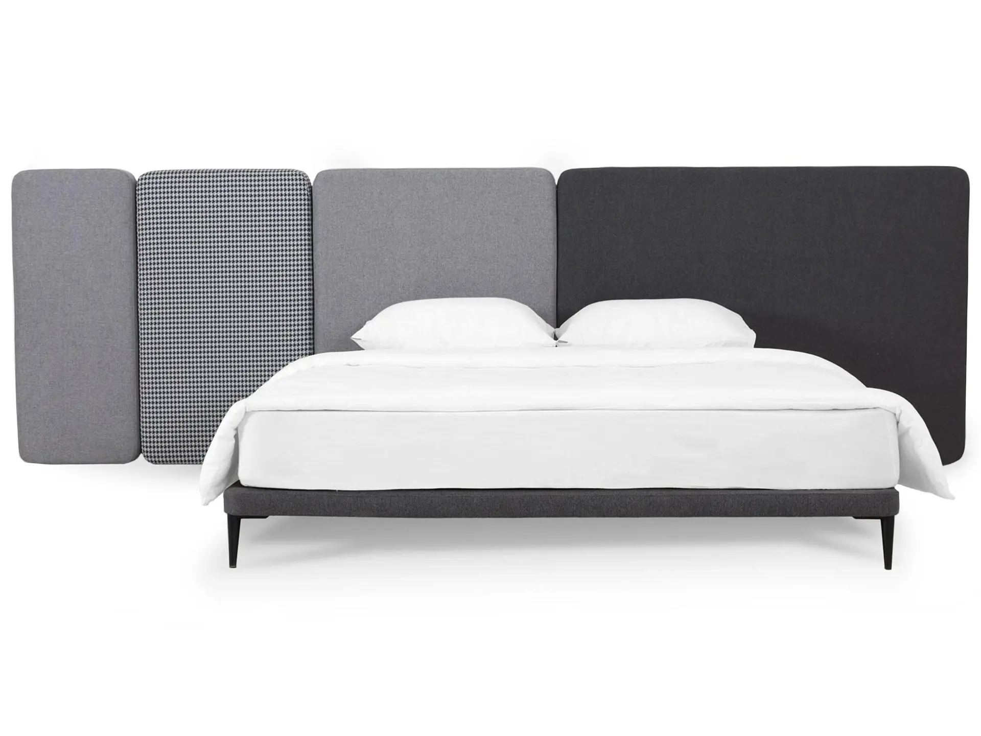 Кровать можно персонализировать при помощи навесных панелей 5 конфигураций. Имеют разную ширину и выполняются в любых цветовых сочетаниях. Крепятся к стене с помощью металлических навесов с регулировкой по высоте. Панели комбинируются по-разному и адаптируются к спальням любых размеров. Можно оформить как традиционное высокое изголовье, так и большой «мягкий уголок». Который сделает вашу территорию идеального сна уютнее, теплее, а также подарит чувство защищенности и расслабления. Кровать Licata органично впишется в пространства разной стилистики от современной классики до минимализма и поможет вам максимально насладиться домашним комфортом.
