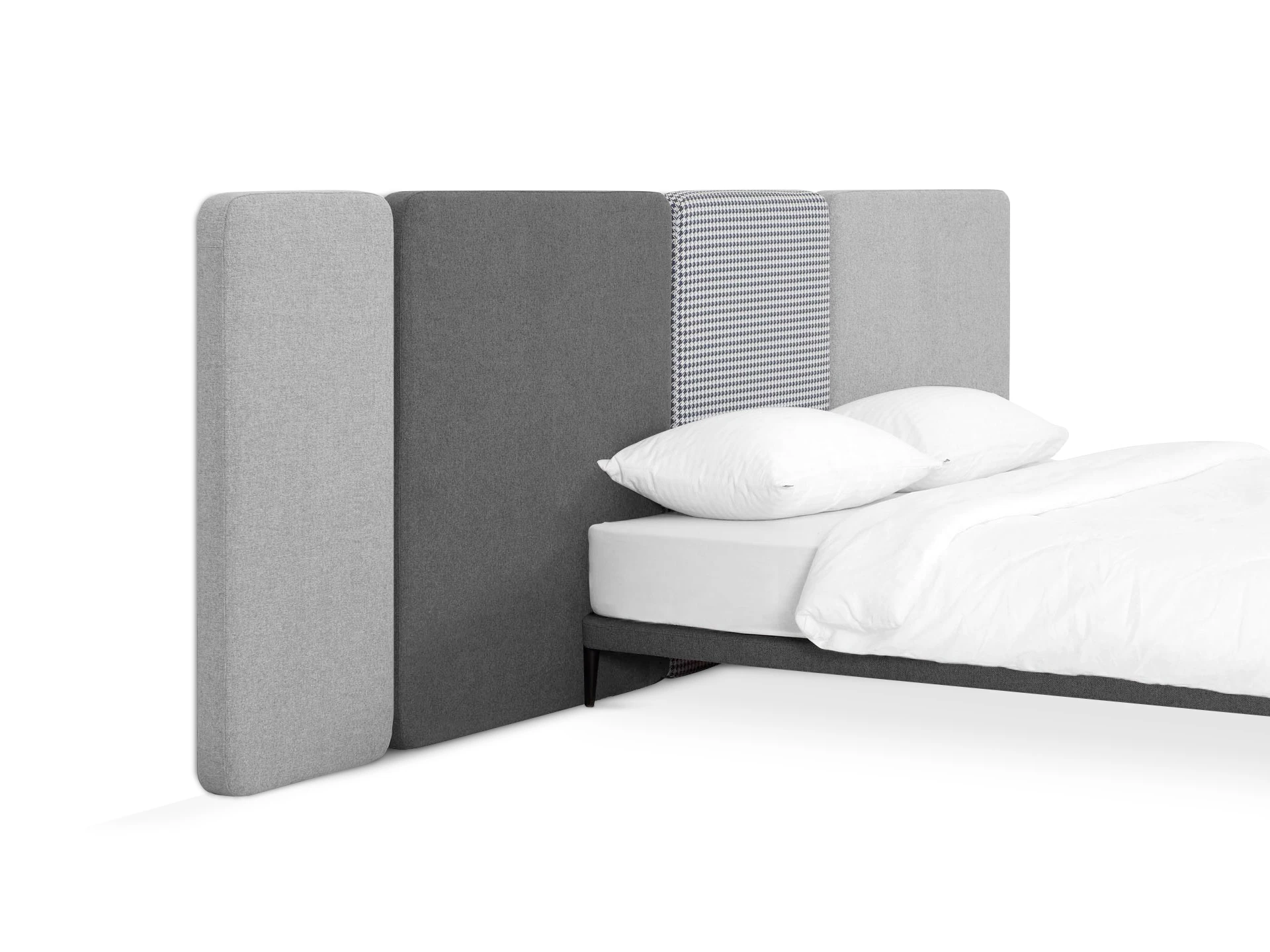 Кровать можно персонализировать при помощи навесных панелей 5 конфигураций. Имеют разную ширину и выполняются в любых цветовых сочетаниях. Крепятся к стене с помощью металлических навесов с регулировкой по высоте. Панели комбинируются по-разному и адаптируются к спальням любых размеров. Можно оформить как традиционное высокое изголовье, так и большой «мягкий уголок». Который сделает вашу территорию идеального сна уютнее, теплее, а также подарит чувство защищенности и расслабления. Кровать Licata органично впишется в пространства разной стилистики от современной классики до минимализма и поможет вам максимально насладиться домашним комфортом.