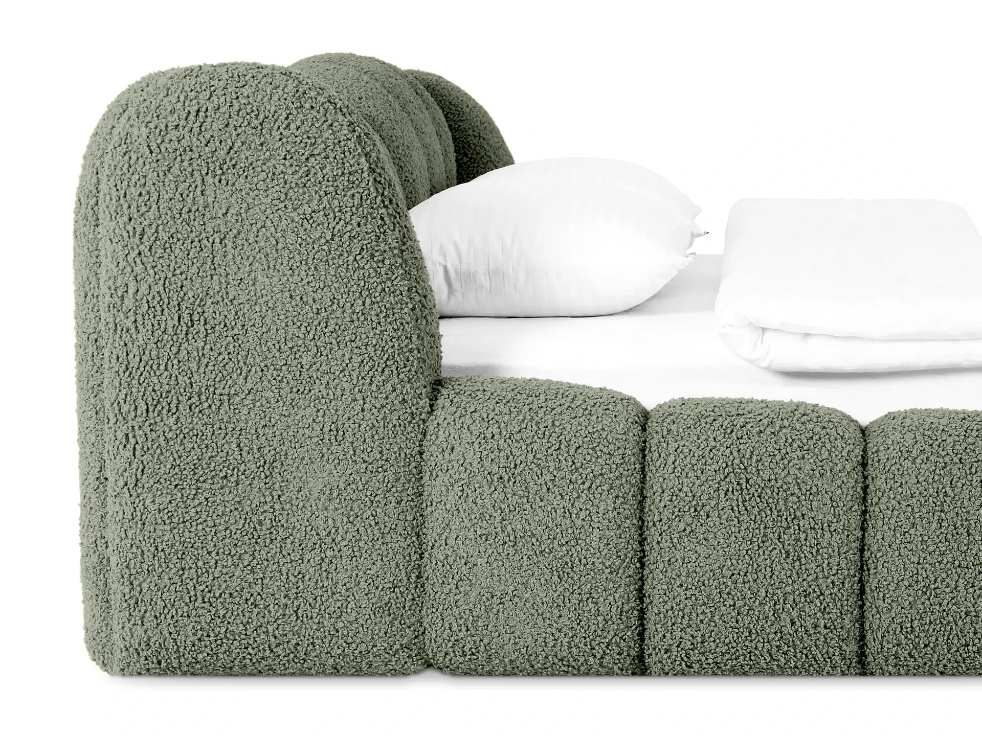 Спинка кровати – сборная, состоит из 8-ми модулей. В собранном виде, внешний вид спинки имитирует декоративную утяжку мягкого элемента.