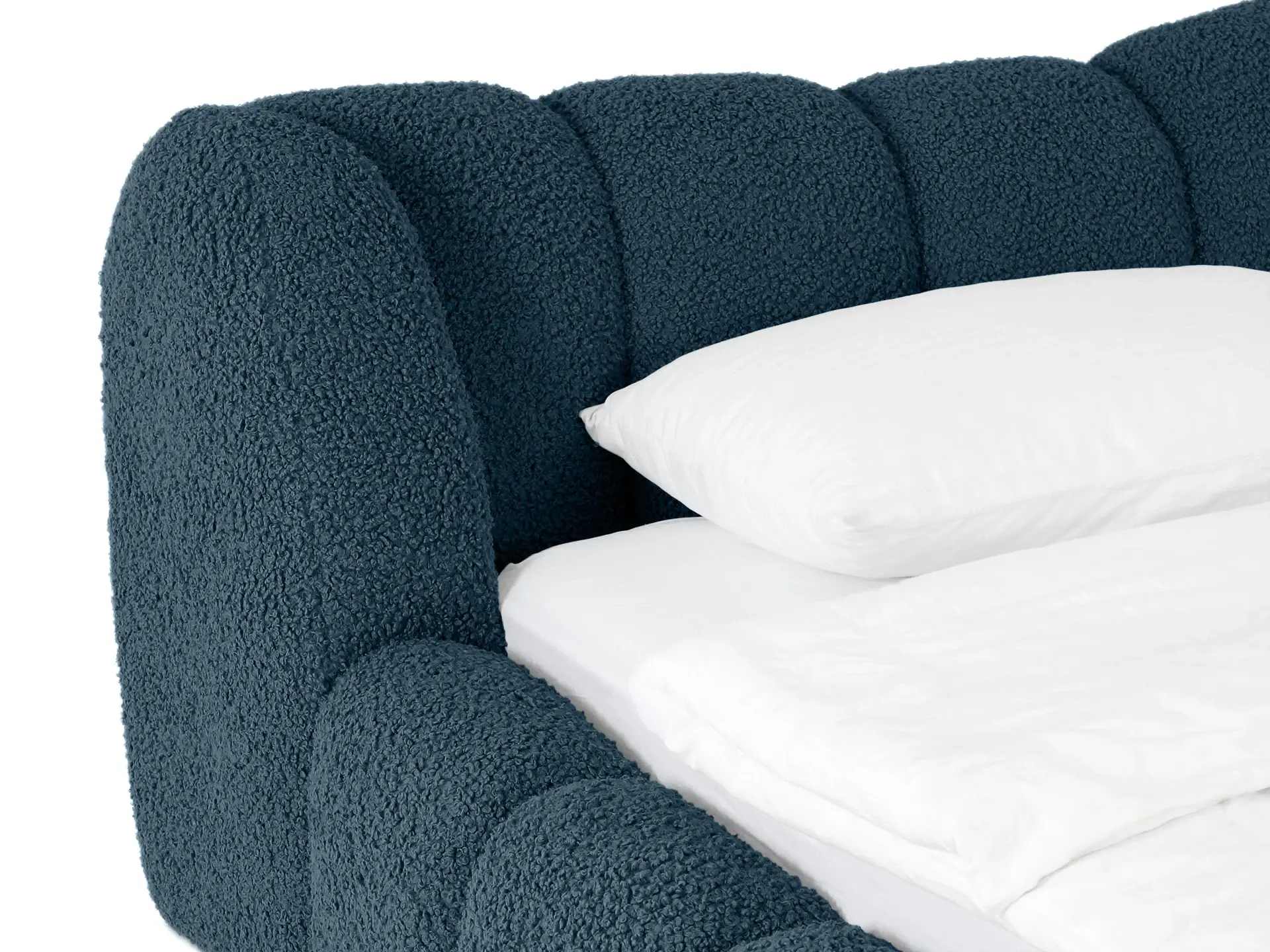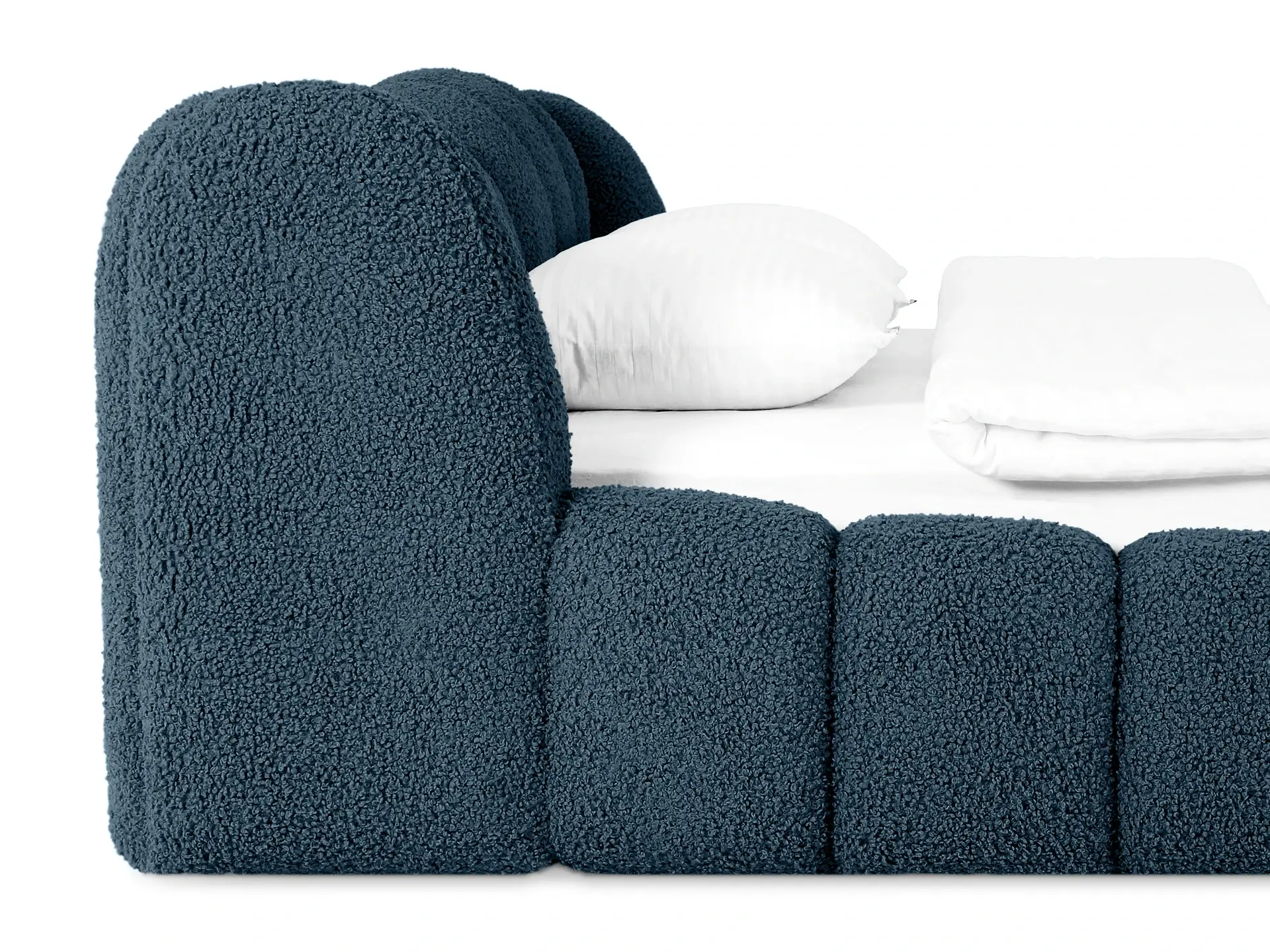 Спинка кровати – сборная, состоит из 8-ми модулей. В собранном виде, внешний вид спинки имитирует декоративную утяжку мягкого элемента.
