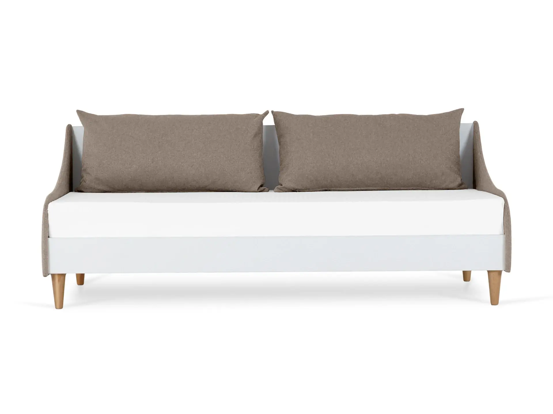 Каркас корпуса кушетки выполнен из белого гладкого ЛДСП толщиной 22 мм.. Подлокотники выполнены из МДФ толщиной 16 мм..