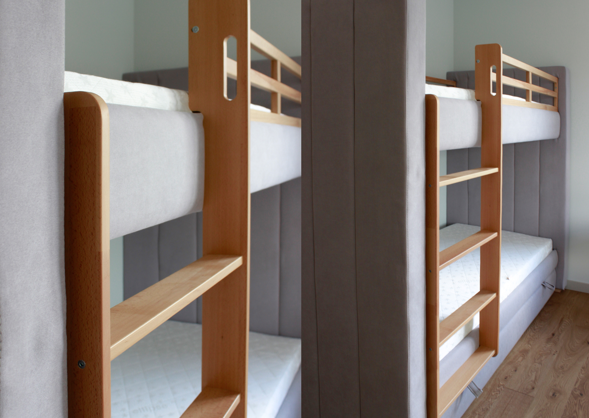 Мягкая уютная двухъярусная кровать Cosy может быть выполнена в различных цветах: бежевый, серый, розовый или голубой. В комплект входит вместительный ящик для хранения постельный принадлежностей или игрушек. Кровать имеет просторное спальное место 90*200 см. Дополнительно можно заказать защитные бортики на нижний ярус. Материал: бук, береза Обивка: ткань микрошенилл