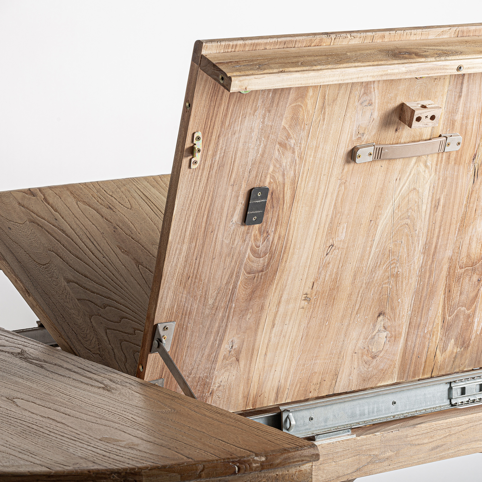Раздвижной стол Sonvigo, коричневый, в колониальном стиле. Изготовлен из переработанной древесины вяза. Съемный и раздвижной. Ширина: 125 см, Глубина: 124 см, Высота: 78 см Раздвижная ширина: 200 см, Глубина: 124 см, Высота: 78 см