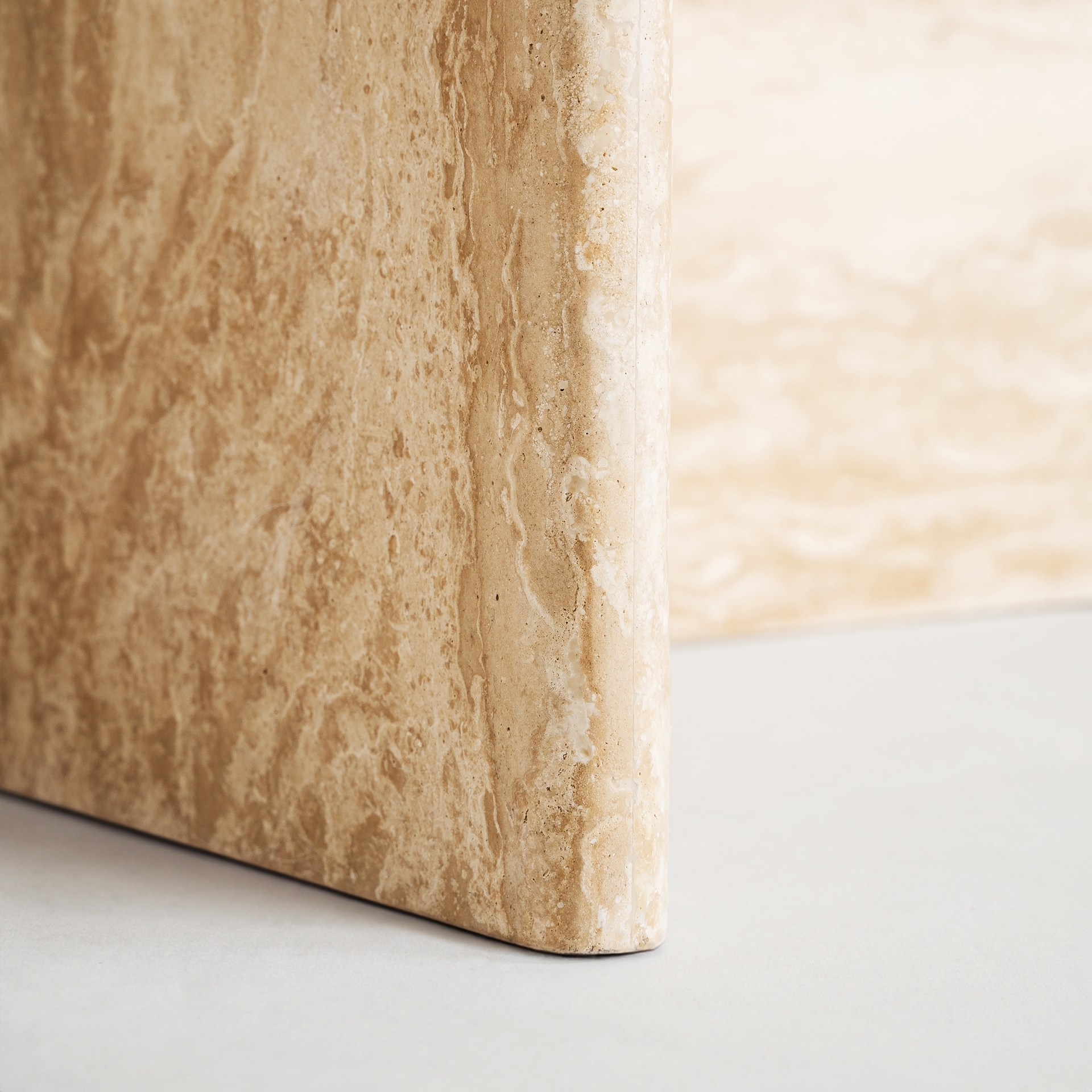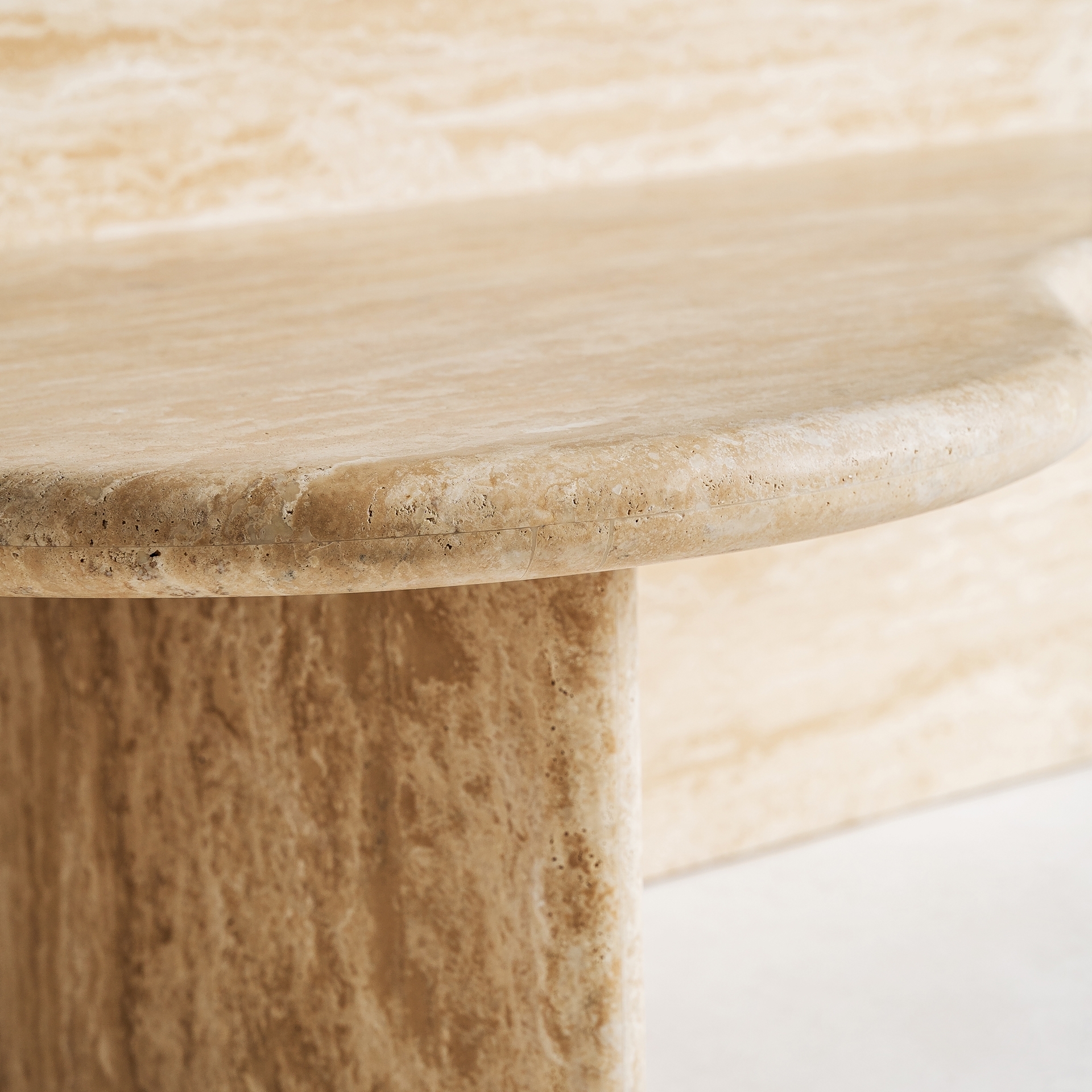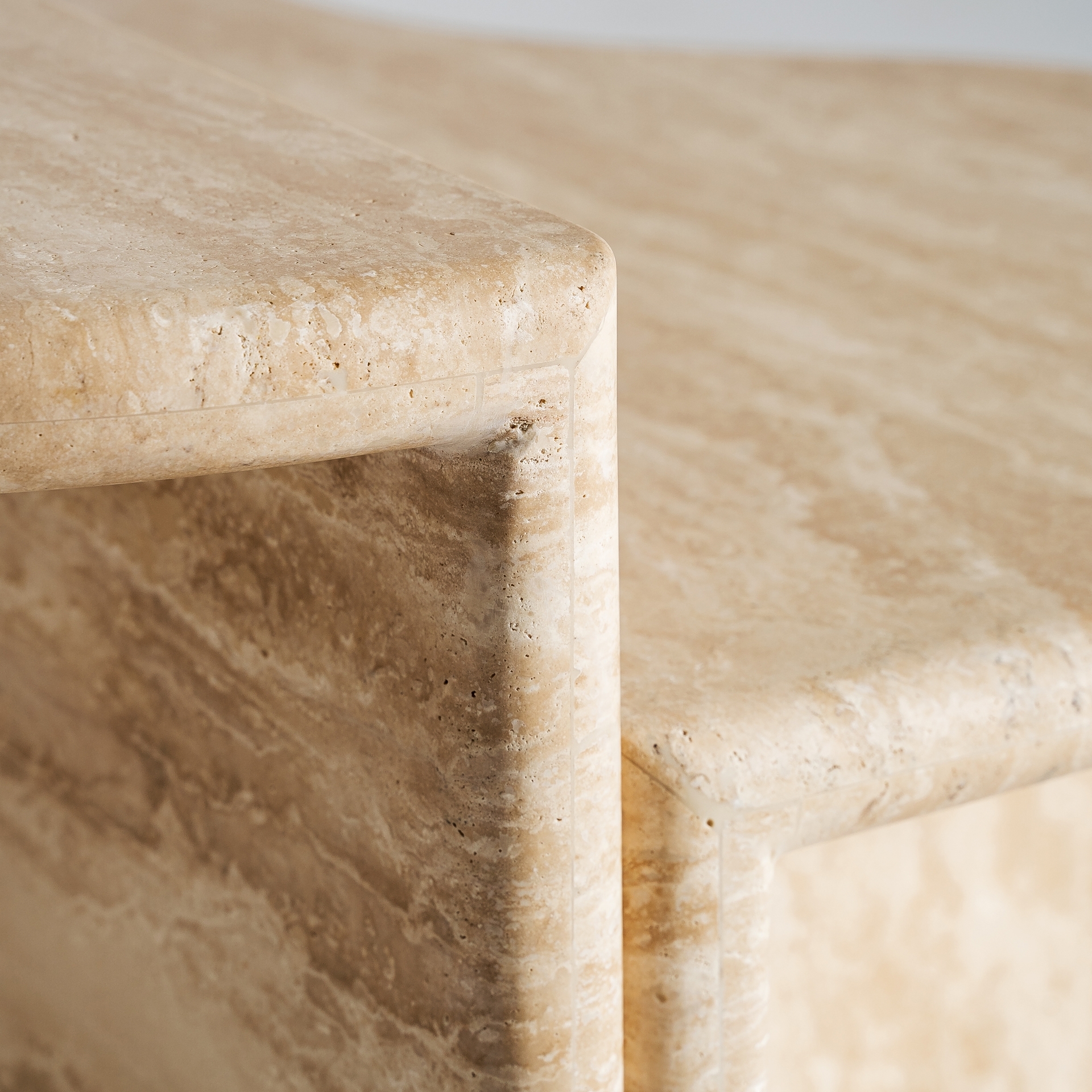 Журнальный столик (набор) Thiennes, светло-коричневый, стиль арт-деко из травертина. Набор изготовлен из натуральных материалов, поэтому каждый из них будет эксклюзивным, со своими уникальными оттенками и текстурами. Пористость и неоднородность материала не считаются браком.