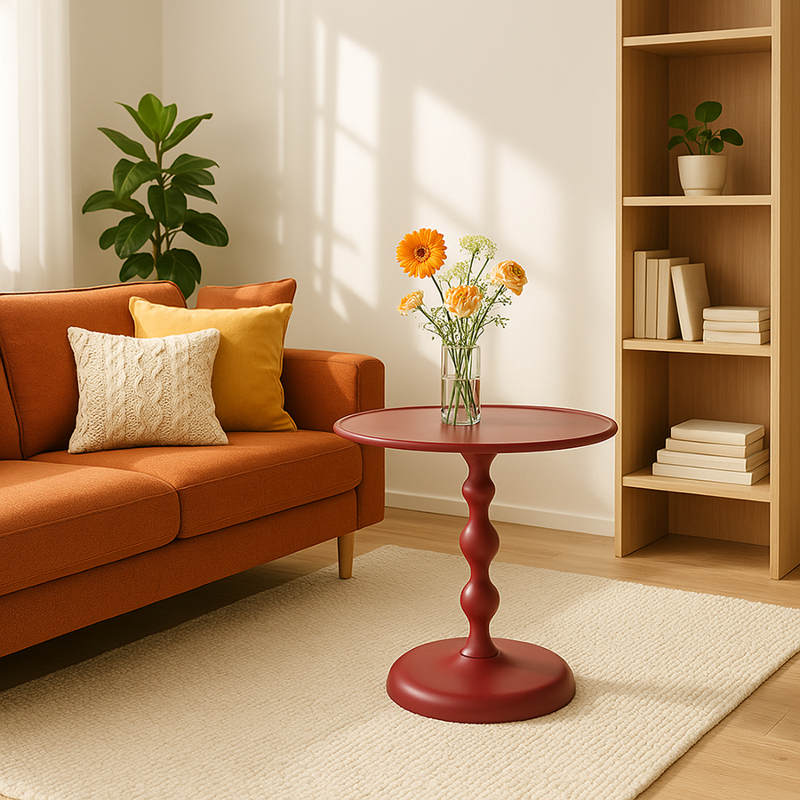 Столик кофейный Fluid – выбор тех, кто предпочитает современный дизайн и оригинальные решения. Выполненный в оттенке “жженый оранжевый”, он привлекает внимание и освежает любое пространство. Используйте его для размещения напитков, демонстрации декора, аксессуаров и как яркий акцент в любой из комнат. Особенности и преимущества: - Столешница и основание выполнены из алюминия, что делает стол легким, при этом прочным, надежным и долговечным. - Компактные размеры позволяют размещать его в любых помещениях – гостиной, спальне и даже на балконе. - Алюминиевую поверхность легко поддерживать в чистоте, что обеспечивает мебели практичность и удобство в использовании. ! Обращаем ваше внимание, что этот предмет мебели изготовлен вручную и может быть не идеален. Небольшие неровности, потертости и различия в цвете – это не брак, а индивидуальная особенность товара, произведенного ручным способом. Материал: алюминий. Размеры: 59х53х36,7 см. Диаметр опоры: 32 см. Цвет: жженый оранжевый.. Пыль и загрязнения с поверхностей можно удалять при помощи мягкого влажного материала. Сразу после очищения мебель рекомендуется протереть сухой тканью. Запрещается применение жестких щеток, абразивов и агрессивной бытовой химии на основе кислот.