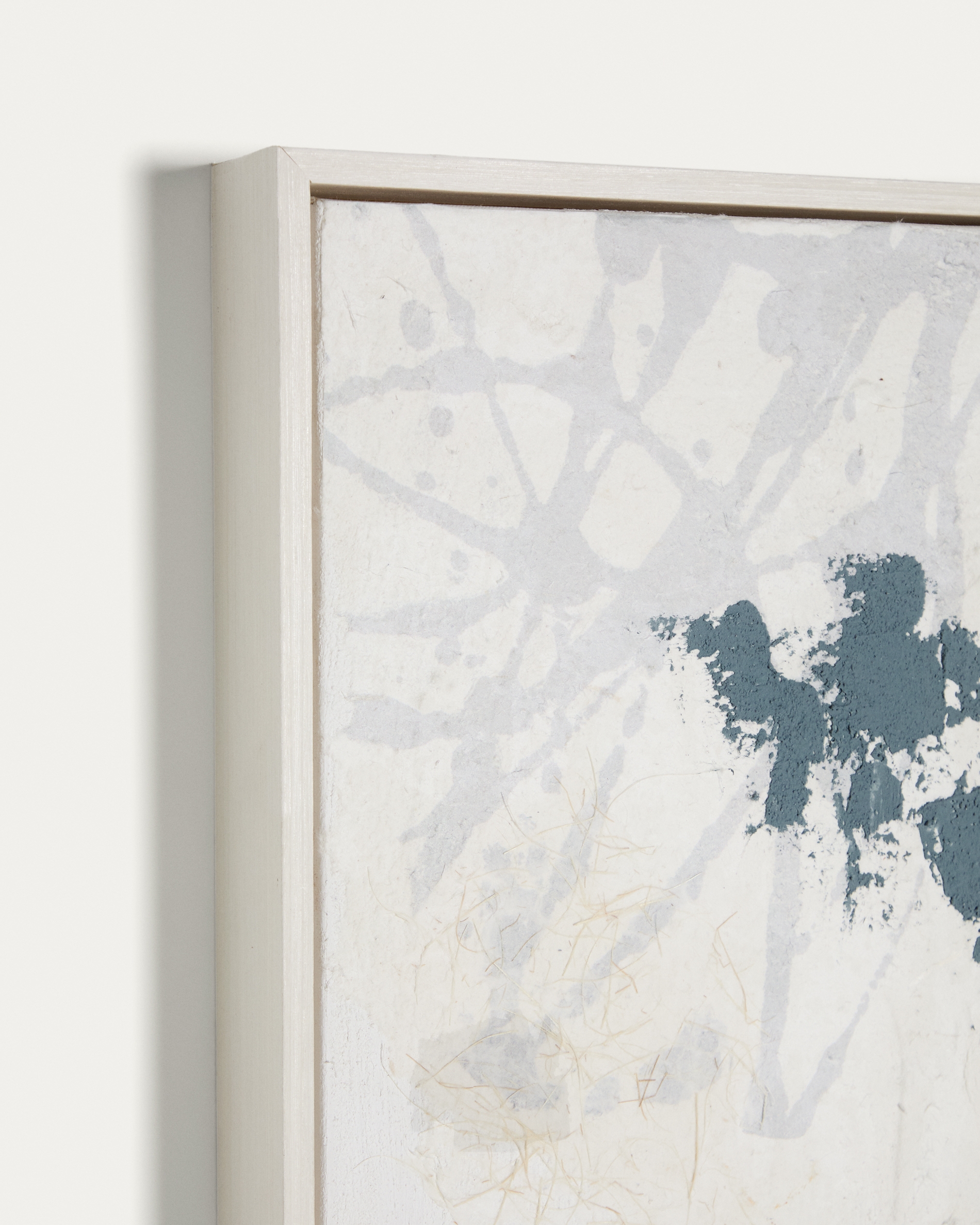 Картина «Эрале» сочетает в себе оттенки серого и синего в абстрактной композиции, которая выделяется различными текстурами, проходящими по ее поверхности. Мазки перекрываются нерегулярно, создавая произведение с визуальной глубиной и спокойным характером. Поскольку картина написана вручную, каждая из них имеет небольшие вариации, что делает ее уникальной. В комплект входит рама и D-образное крепление для подвешивания, разработанное для удобства размещения на стене в зависимости от ее типа.