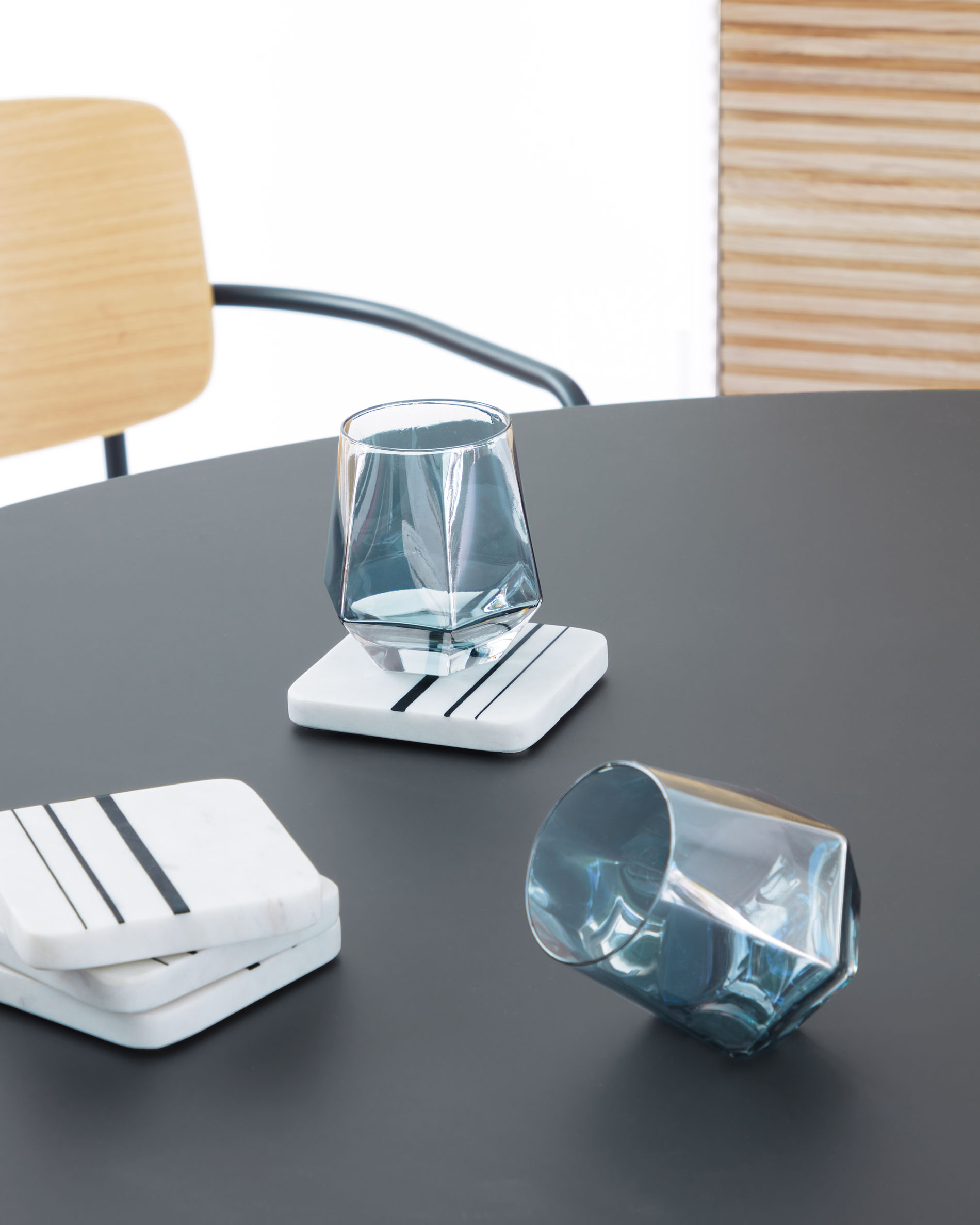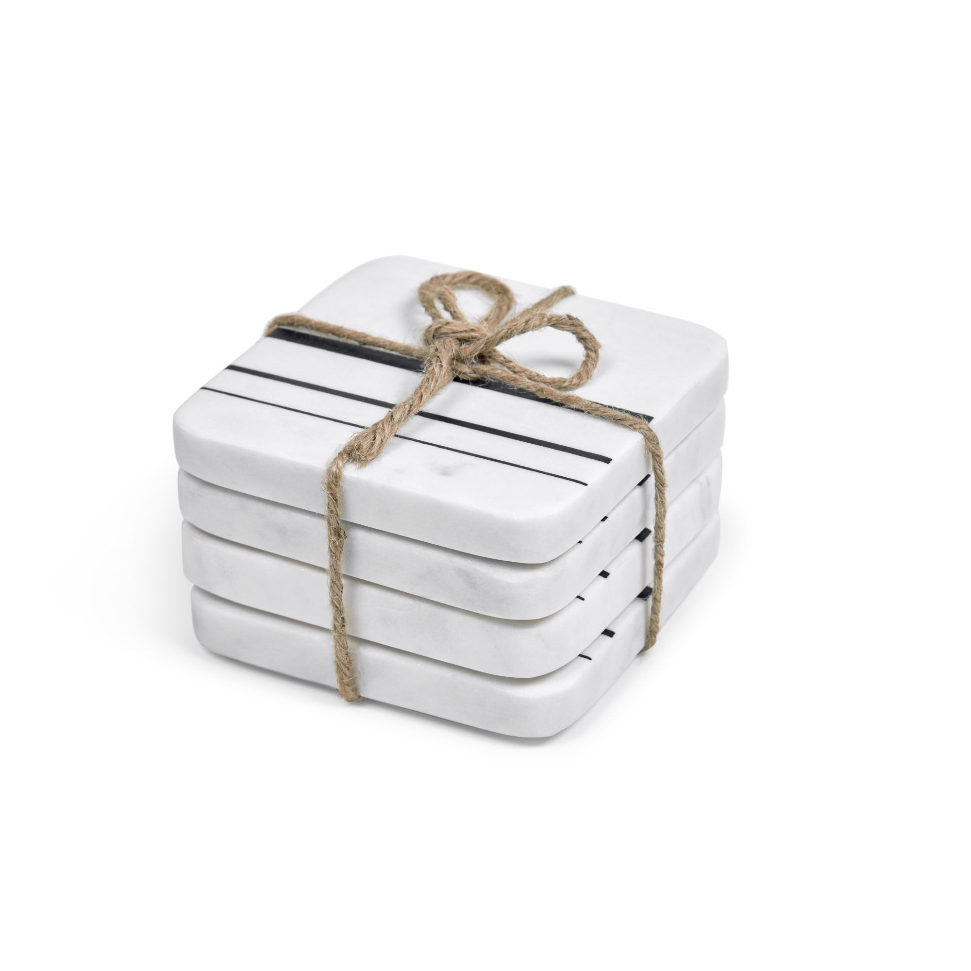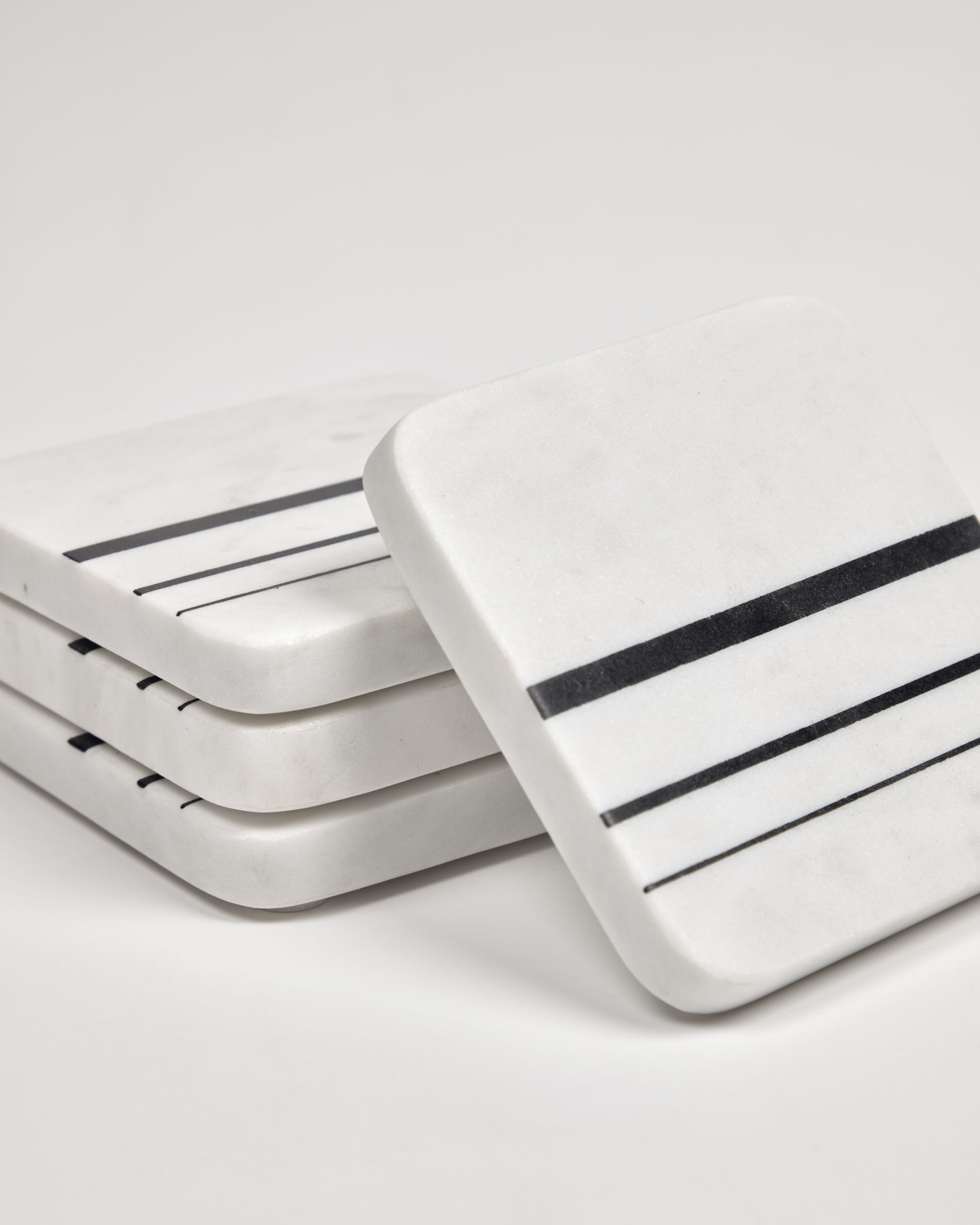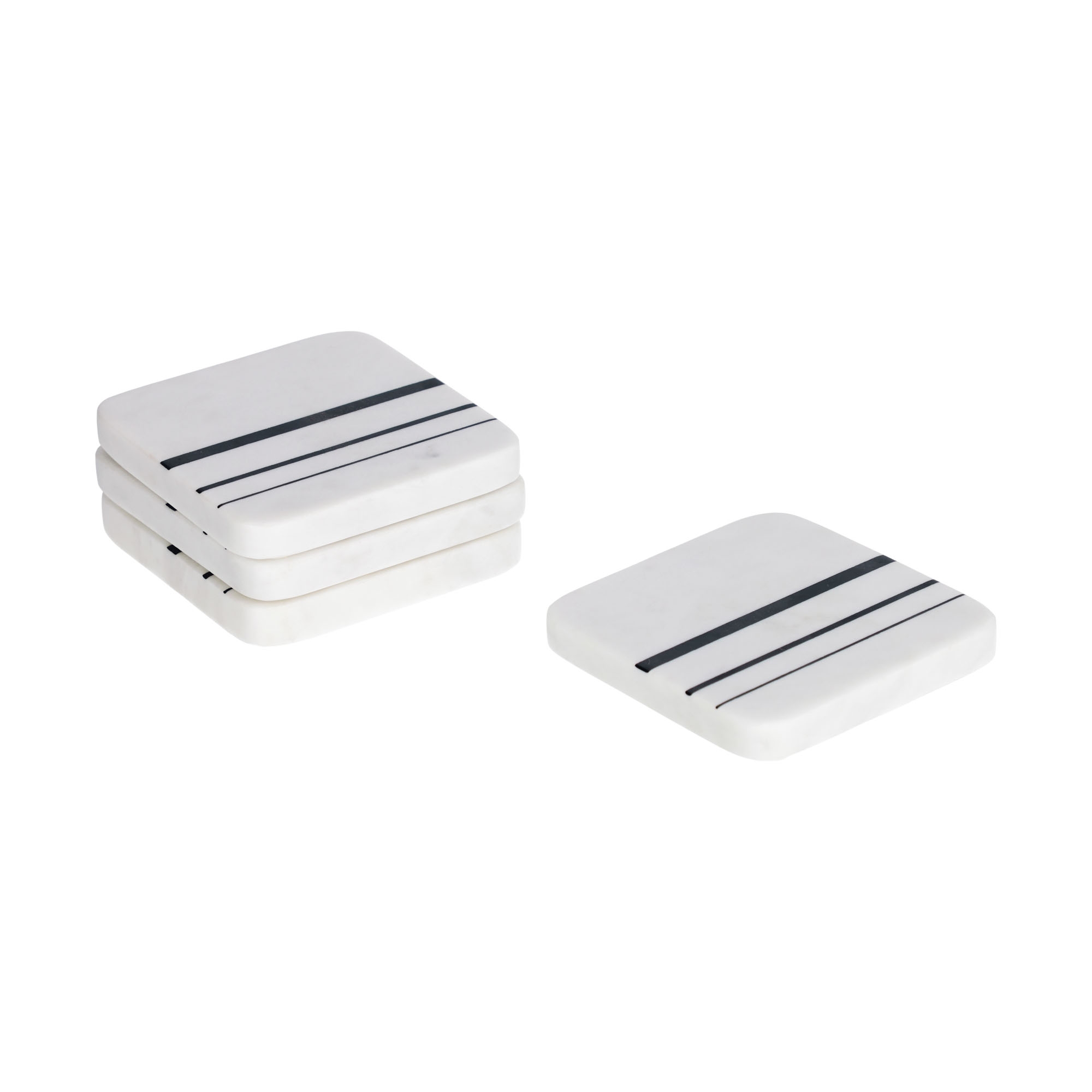 Набор из 4 подставок Tahina из белого мрамора с черными полосами