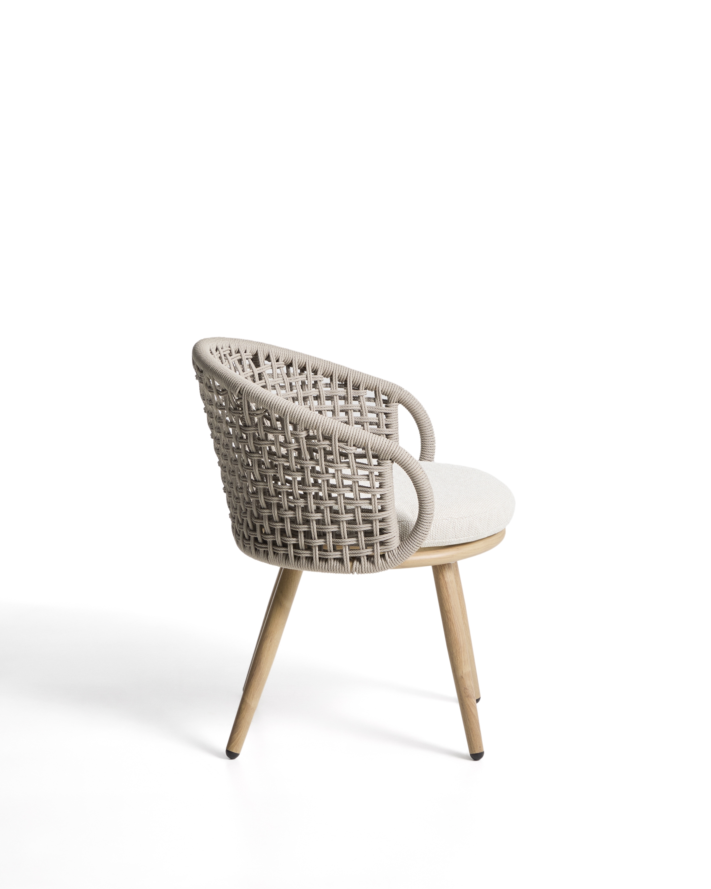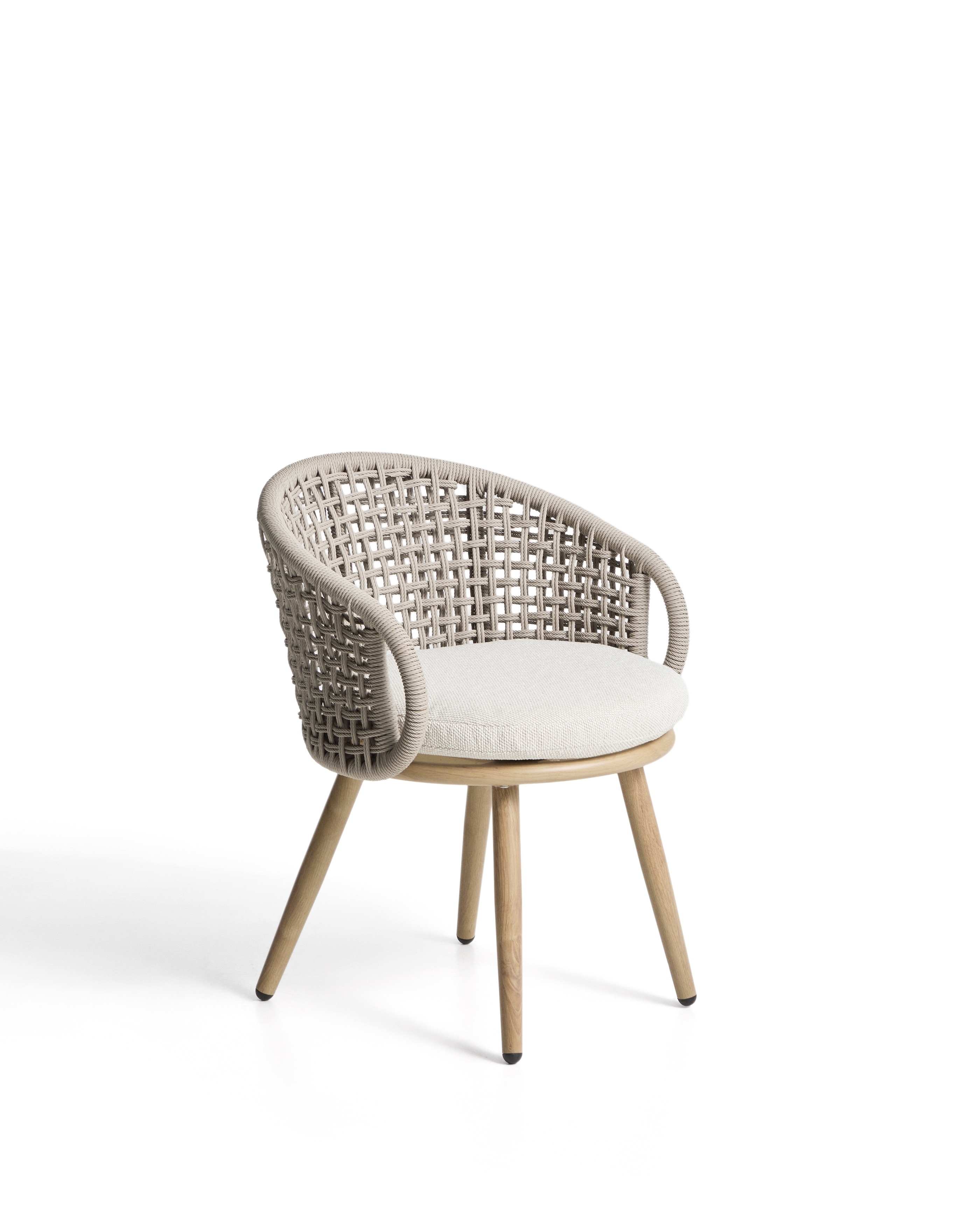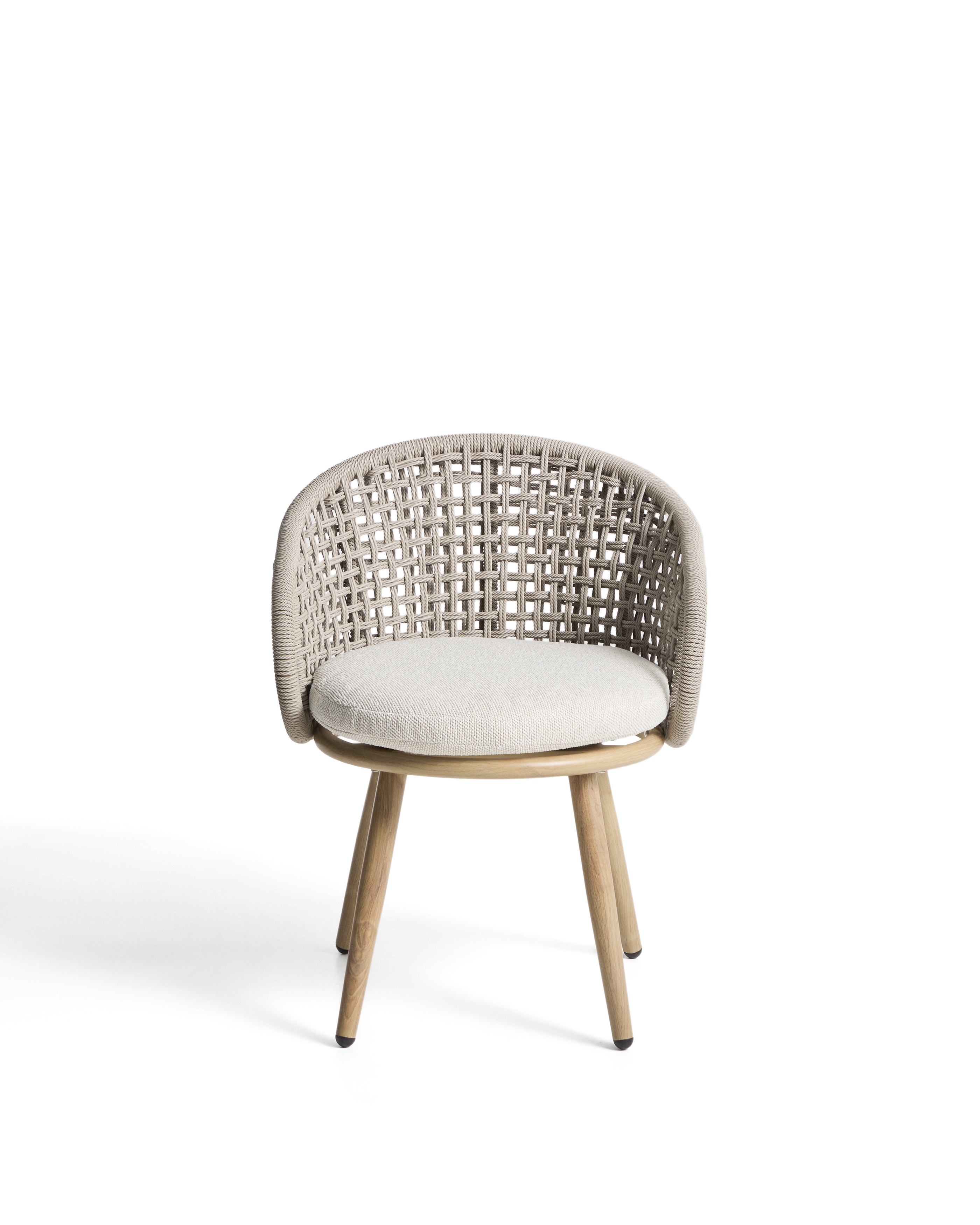 Уличный стул Lidario из алюминия с отделкой под дерево и бежевой веревки