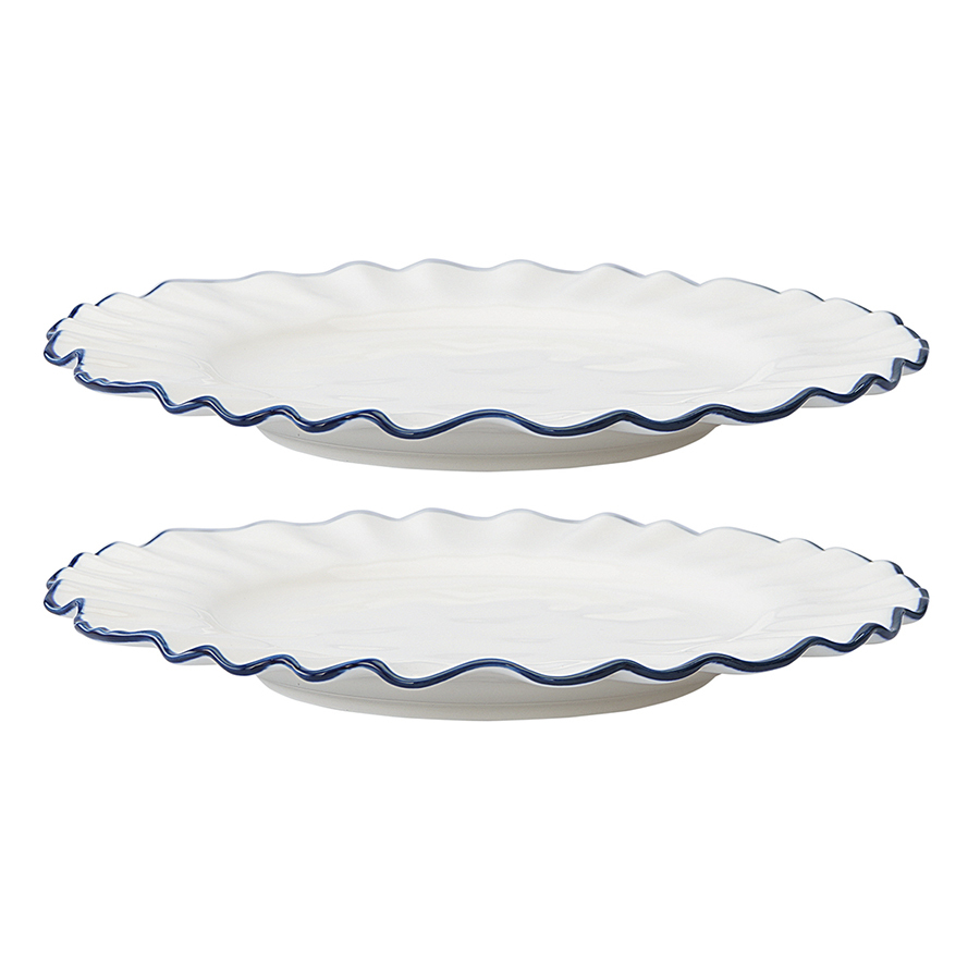 Тарелки из коллекции Santorini от бренда Liberty Jones воплощают в себе элегантность посуды из фарфора, привлекая необычным дизайном с контрастными акцентами. Особенности и преимущества: - Фарфор является прочным, устойчивым к износу материалом, который сохраняет презентабельный вид долгие годы. - Акцент в виде контрастной каймы и легкий рельеф делают дизайн интересным и запоминающимся. - Идеально гладкая поверхность и высокая сопротивляемость материала к химическим воздействиям обеспечивают простой уход. - Белая посуда отлично гармонирует с предметами сервировки любой цветовой гаммы. Коллекция Santorini великолепно передает атмосферу уединенного греческого острова, известного своими завораживающими видами и удивительной архитектурой. Оттенки белого и синего напоминают о бескрайнем море и уютных домиках на скалах, а необычная “мятая” фактура фарфора ассоциируется с каменистыми склонами и живописными утесами. Материал: фарфор. Размеры: 21х21х2,1 см. Количество в наборе: 2 шт. Можно мыть в посудомоечной машине, замораживать, использовать в микроволновой печи и духовке при температуре не более 180° C.