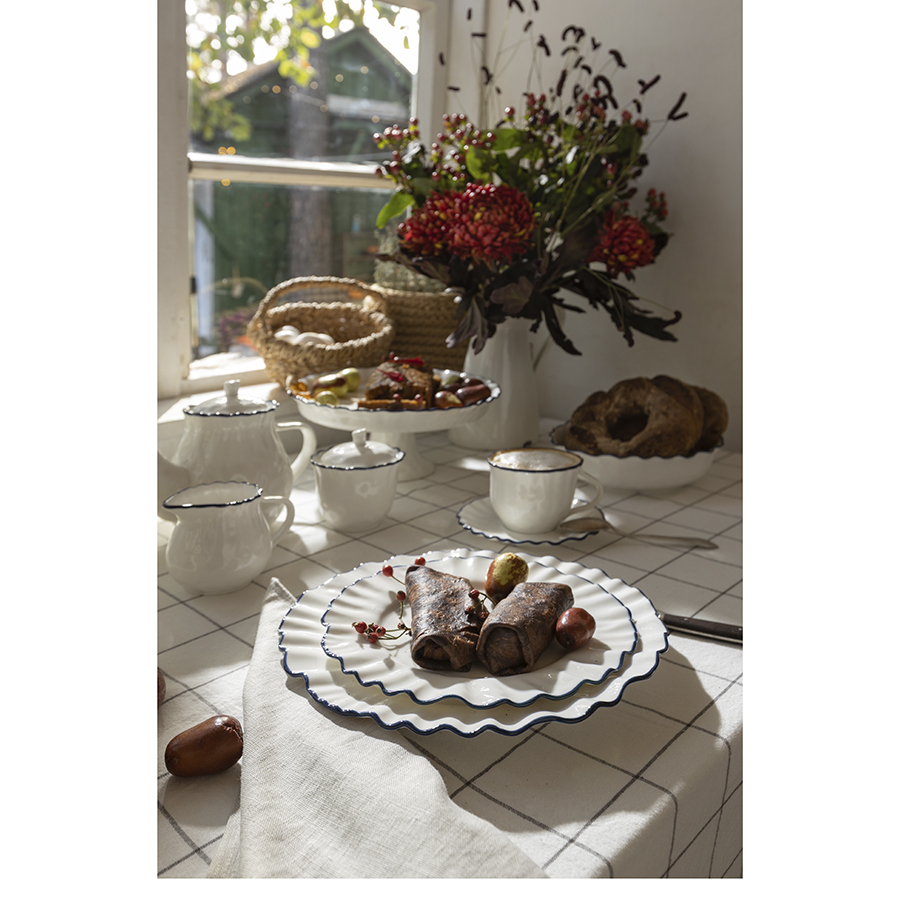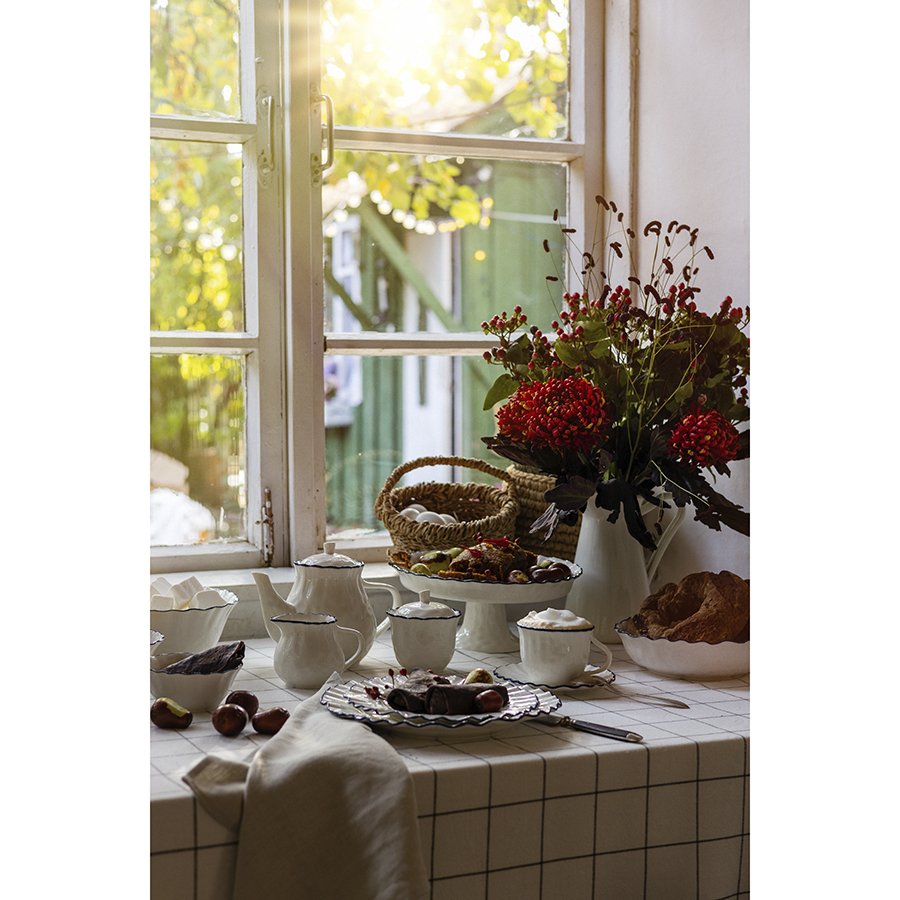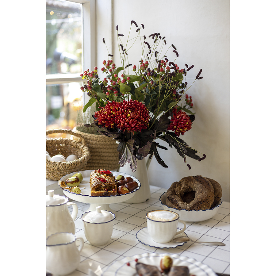 Подставка для торта из коллекции Santorini от бренда Liberty Jones воплощает в себе элегантность посуды из фарфора, привлекая необычным дизайном с контрастными акцентами. Особенности и преимущества: - Фарфор является прочным, устойчивым к износу материалом, который сохраняет презентабельный вид долгие годы. - Акцент в виде контрастной каймы и легкий рельеф делают дизайн интересным и запоминающимся. - Идеально гладкая поверхность и высокая сопротивляемость материала к химическим воздействиям обеспечивают простой уход. - Белая посуда отлично гармонирует с предметами сервировки любой цветовой гаммы. Коллекция Santorini великолепно передает атмосферу уединенного греческого острова, известного своими завораживающими видами и удивительной архитектурой. Оттенки белого и синего напоминают о бескрайнем море и уютных домиках на скалах, а необычная “мятая” фактура фарфора ассоциируется с каменистыми склонами и живописными утесами. Материал: фарфор. Размеры: 25,5х25,5х11 см. Можно мыть в посудомоечной машине, замораживать, использовать в микроволновой печи и духовке при температуре не более 180° C.