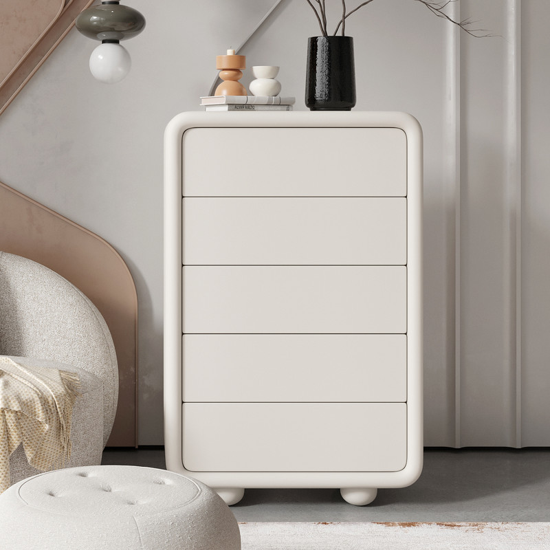 Комод идеальный вариант для интерьеров в современном стиле. Комод изготовлен из высококачественного МДФ высокой плотности стандарта Е1, покрытого экологически чистым лаком на водной основе. Оснащен пятью выдвижными ящиками.