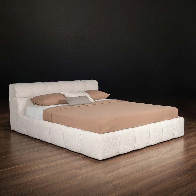 Уникальная кровать Wanda от бренда MOD Interiors. Имеет необычный дизайн изголовья и каркаса в текстиле с вертикальной дизайнерской стяжкой. Отлично подойдет для интерьера спальни в таких стилях, как современный, скандинавский, ваби-саби, джапанди. Размер спального места 160*200 см. Обивка кровати - букле с светло-бежевом, почти белом оттенке.Ткань из коллекции Loop фактурная, имеет отличные показатели по износоустойчивости и плотности. Узелковая рыхлая структура букле отдаленно напоминает каракуль. Многочисленные завитки на полотне создают неповторимый узор. Приятная и мягкая ткань на ощупь. Безопасный состав для людей с аллергией, болеющих астмой и другими заболеваниями верхних дыхательных путей. Тип ткани: Букле. Устойчивость к истиранию: >100000 циклов. Состав ткани: Полиэстер - 100%. Рекомендации по уходу: Сухая уборка пылесосом с мягкой щеткой; Влажная уборка микрофиброй; Не использовать отбеливатель и абразивные средства. Кровать прекрасно сочетается с любой корпусной мебелью фабрики MOD Interiors. Фабрика предлагает более 100 образцов обивки на выбор (микровелюр, шенилл, рогожка). Задняя часть изголовья обита основной тканью, что позволяет расположить кровать в любой части спальни. Каркас изготовлен из высококачественной МДФ высокой плотности и березовой фанеры (Россия), многослойного материала, изготавливаемого путём склеивания специально подготовленного шпона. Для повышения прочности фанеры слои шпона накладываются так, чтобы волокна древесины каждого листа были перпендикулярны соседним, поэтому, чтобы направления внешних слоёв совпадали, количество слоёв шпона обычно нечётное: три и более. Ламели решетки изготовлены из 100% массива березы. Наполнитель: Экологичный пенополиуретан (Россия). Кровать поставляется без матраса и постельных принадлежностей.
