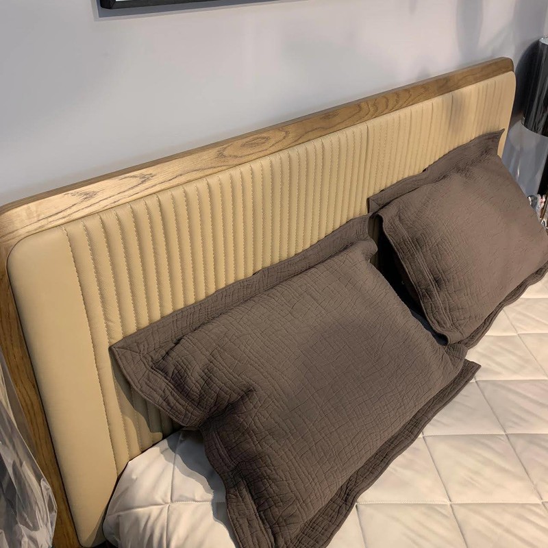 Стильная деревянная кровать из коллекции Paterna от бренда MOD Interiors. Модель имеет обивку изголовья в натуральной коже из ассортимента фабрики. Кровать выполнена в современном стиле с настроением ретро 60-х. Оригинальной деталью являются ножки в форме заточенного карандаша, которые смотрятся максимально аутентично. Закругленная форма изголовья также подчеркивают ретро-атмосферу. Модель из высококачественной шпонированной МДФ высокой плотности в шпоне дуба. Размер спального места у данной модели 160*200 см. Покрывала, подушки и матрас не входят в комплект поставки.