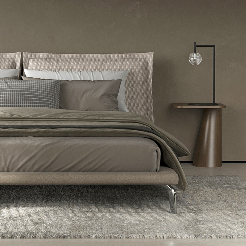 Дизайнерская модель из коллекции Telas New от бренда MOD Interiors. Каркас кровати изготовлен из натурального массива дерева, ножки — из высококачественного прочного металла. Модель выполнена в современном стиле и дополнена в зоне изголовья двумя объемными подушками. Обивка каркаса и изголовья выполнена в одной ткани, подушек — в другой. Размер спального места 180*200 см. В комплекте идет решетка. Кровать поставляется с решеткой, но без матраса и постельных принадлежностей.