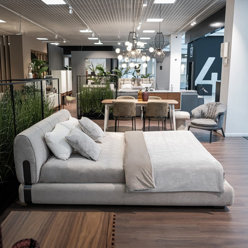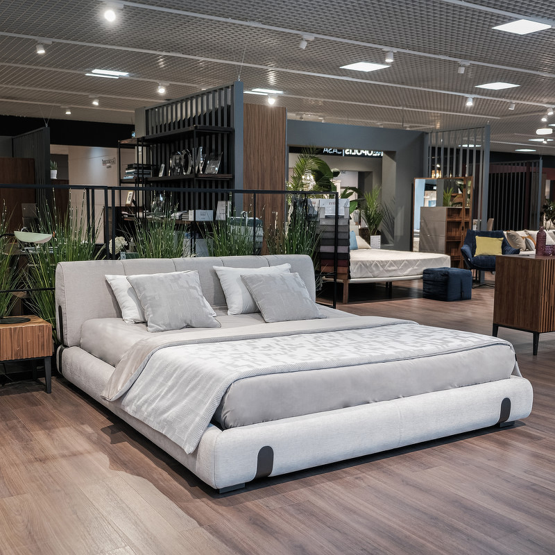 Дизайнерская кровать с оригинальным силуэтом из коллекции Telas New от бренда MOD Interiors. Модель подойдет для модного интерьера в таких стилях, как современный, скандинавский, минимализм и лофт. Эта кровать уникальна своим дизайном и формой, а также имеет черные акцентные вставки по бокам изголовья и на фронтальной части каркаса. Каркас изготовлен из массива дерева, наполнитель подушек — ППУ, ножки — из высококачественного металла. Вы можете выбрать конкретный материал обивки из ассортимента фабрики. Размер спального места данной модели 180*200 см. Кровать поставляется с решеткой, но без матраса и постельных принадлежностей.