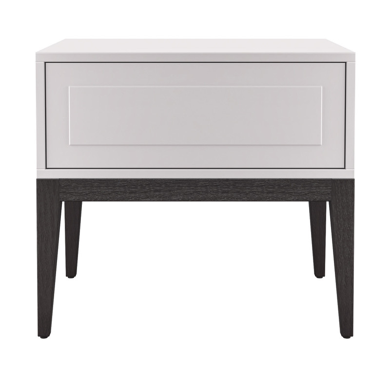 Миниатюрная серая тумбочка с одним ящиком, на высоких ножках из коллекции Marbella от бренда MOD Interiors. Дизайнерская фрезеровка фасадов в лаконичном стиле. Отделка фасадов — приятный серый матовый оттенок. Фасады — 100% шпон ореха на высококачественной МДФ высокой плотности. Ножки из шпонированного массива березы — темно-коричневая (почти черная) древесина с натуральным рельефом. Прикроватная тумбочка входит в коллекцию выполненную в едином стиле. Можно составить полноценную композицию для спальни. Внутри ящик оснащен системой легкого открывания push-to-open.