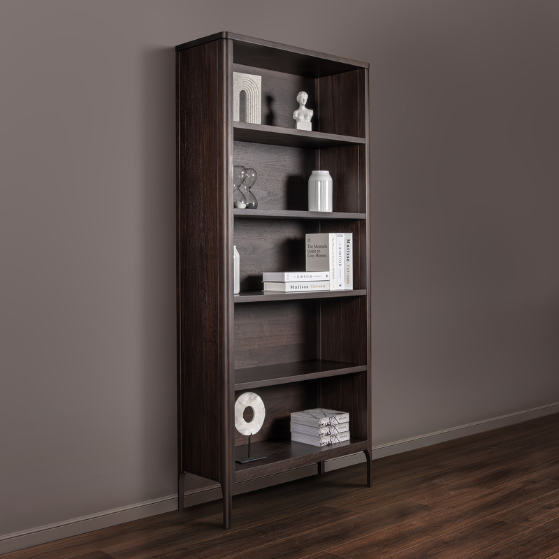 Открытый стеллаж бренда MOD Interiors можно использовать как в виде стеллажа в детской комнате так и в виде книжного шкафа в гостиной или библиотеке. Корпус стеллажа изготовлен из высококачественного МДФ высокой плотности, Ножки - из массива дерева. Отделка - натуральный шпон ореха, тонированного в цвет горького шоколада. Полки регулируются по высоте. Максимальная нагрузка на полку - 15кг.