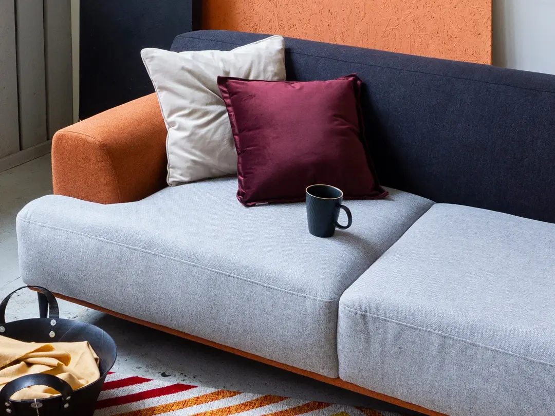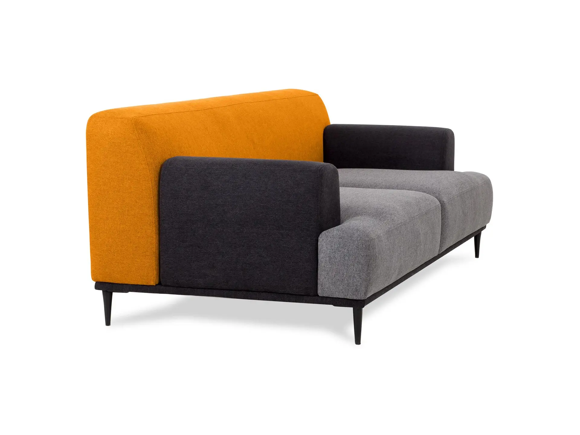 Модель отличается скульптурностью и динамичностью, а также популярными нотами конструктивизма. Основа дизайна — четкий силуэт, комбинация строгих и плавных линий. Геометрия на пике интерьерной моды. «Фишка» линейки — сочные цветовые сочетания в стилистике колор-блокинга. Оттенки могут быть темными, светлыми, играть на контрасте или едва заметно сменять друг друга, что поддержит небанальный характер пространства. Каркас дивана выполнен из бруса хвойных пород и высококачественной фанеры. Высокая спинка и мягкое сиденье обеспечивают максимально комфортные ощущения.